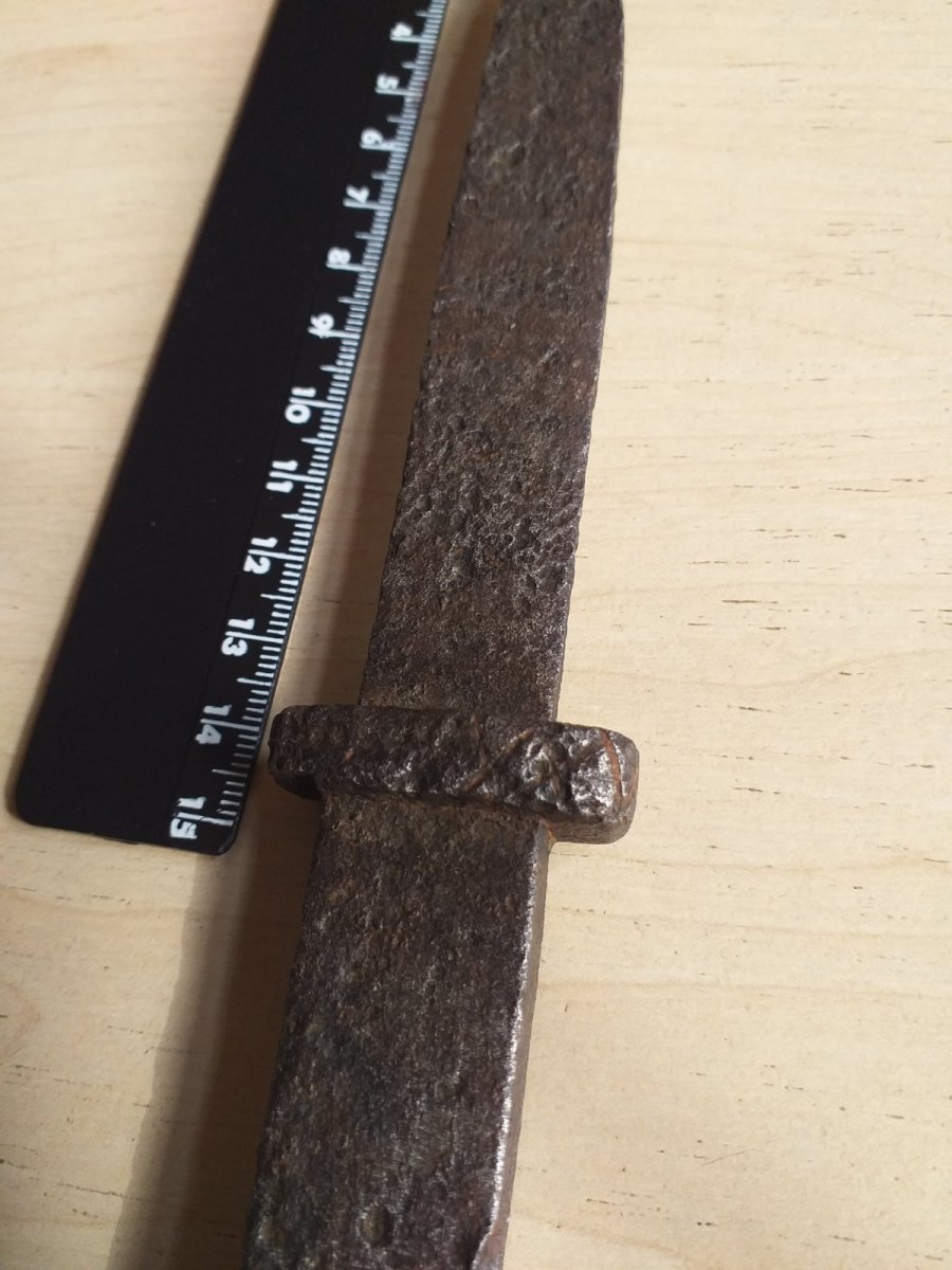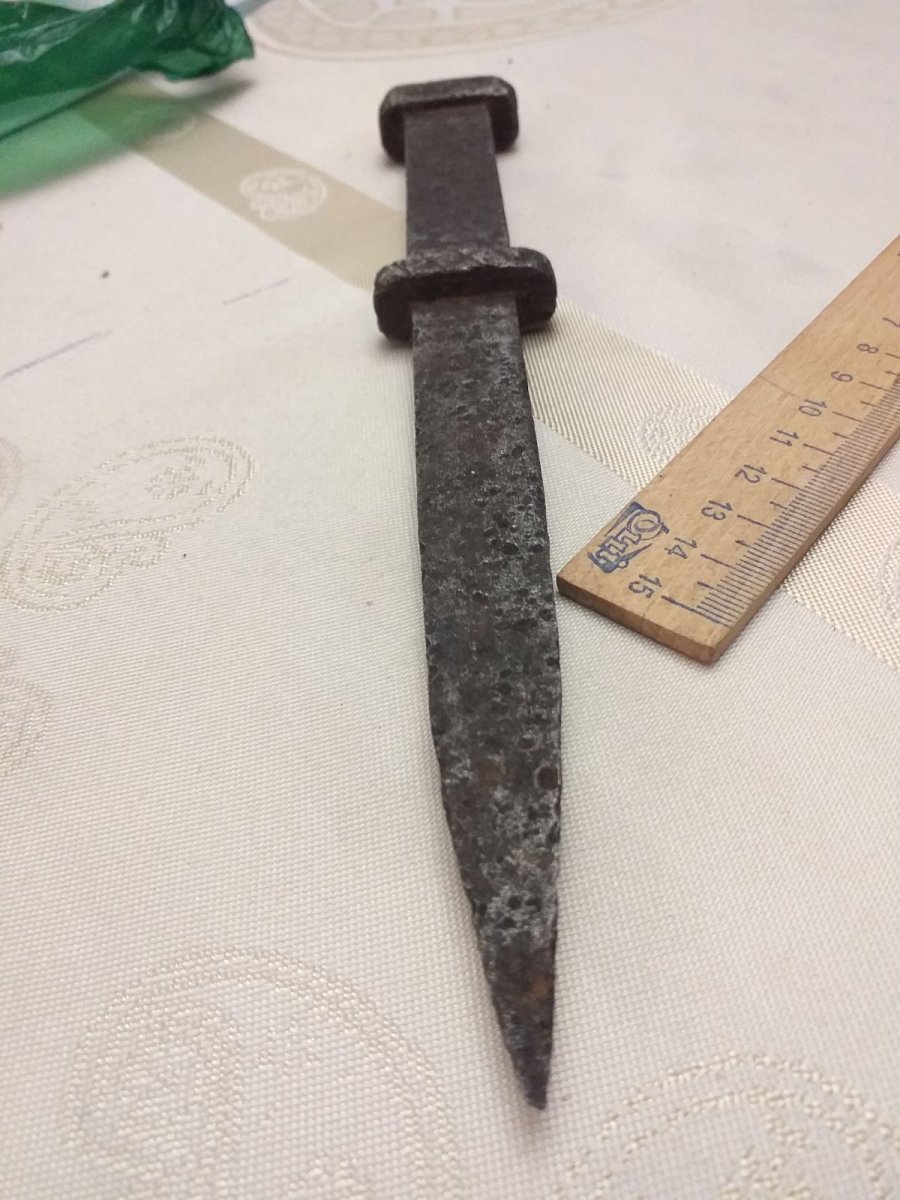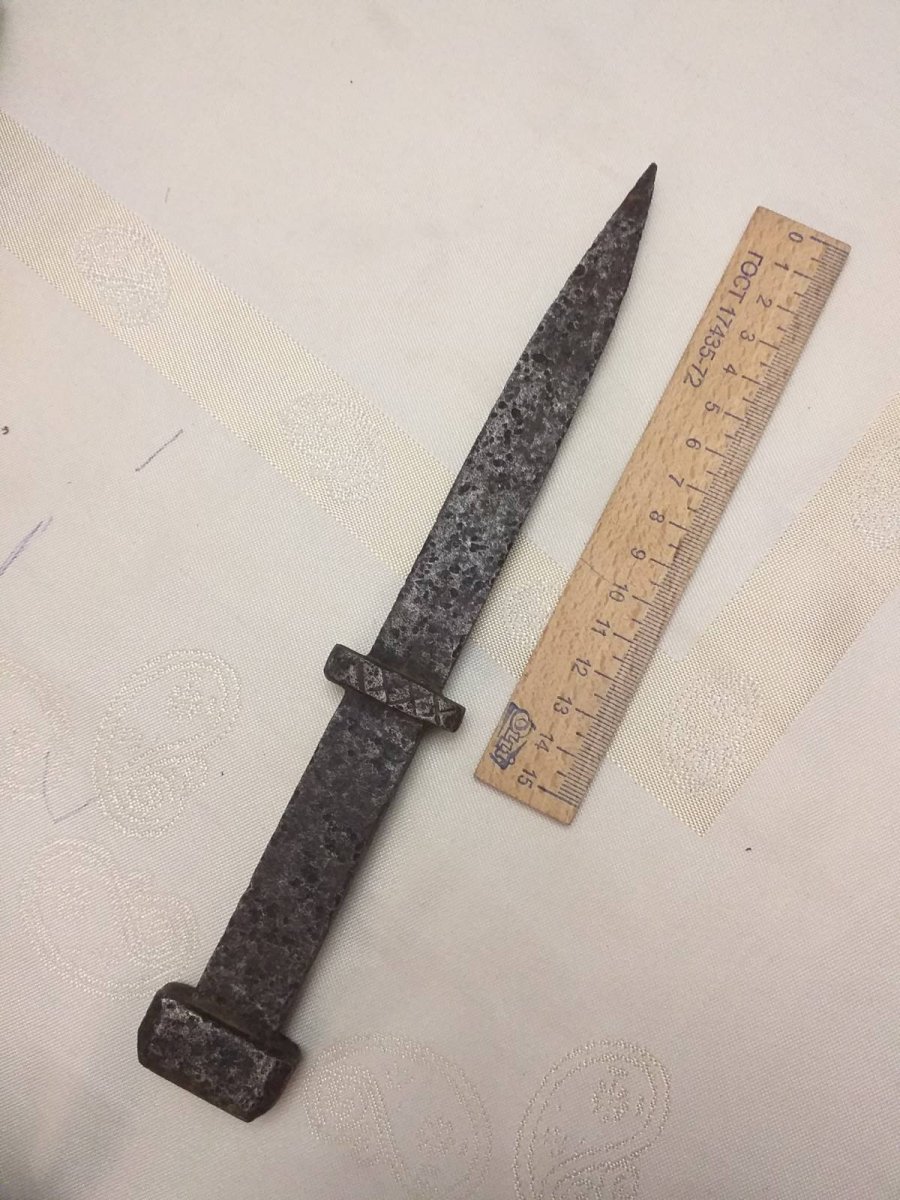 Самоделка кузнечная,рукоять в 3 раза толще и тяжелее клинка,проще поверить что его реконструкторы ист.Фехта посеяли чем в боевой образец.