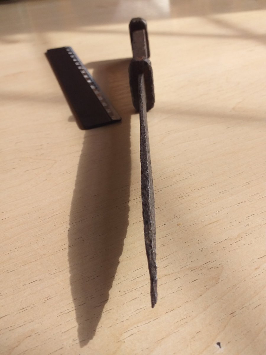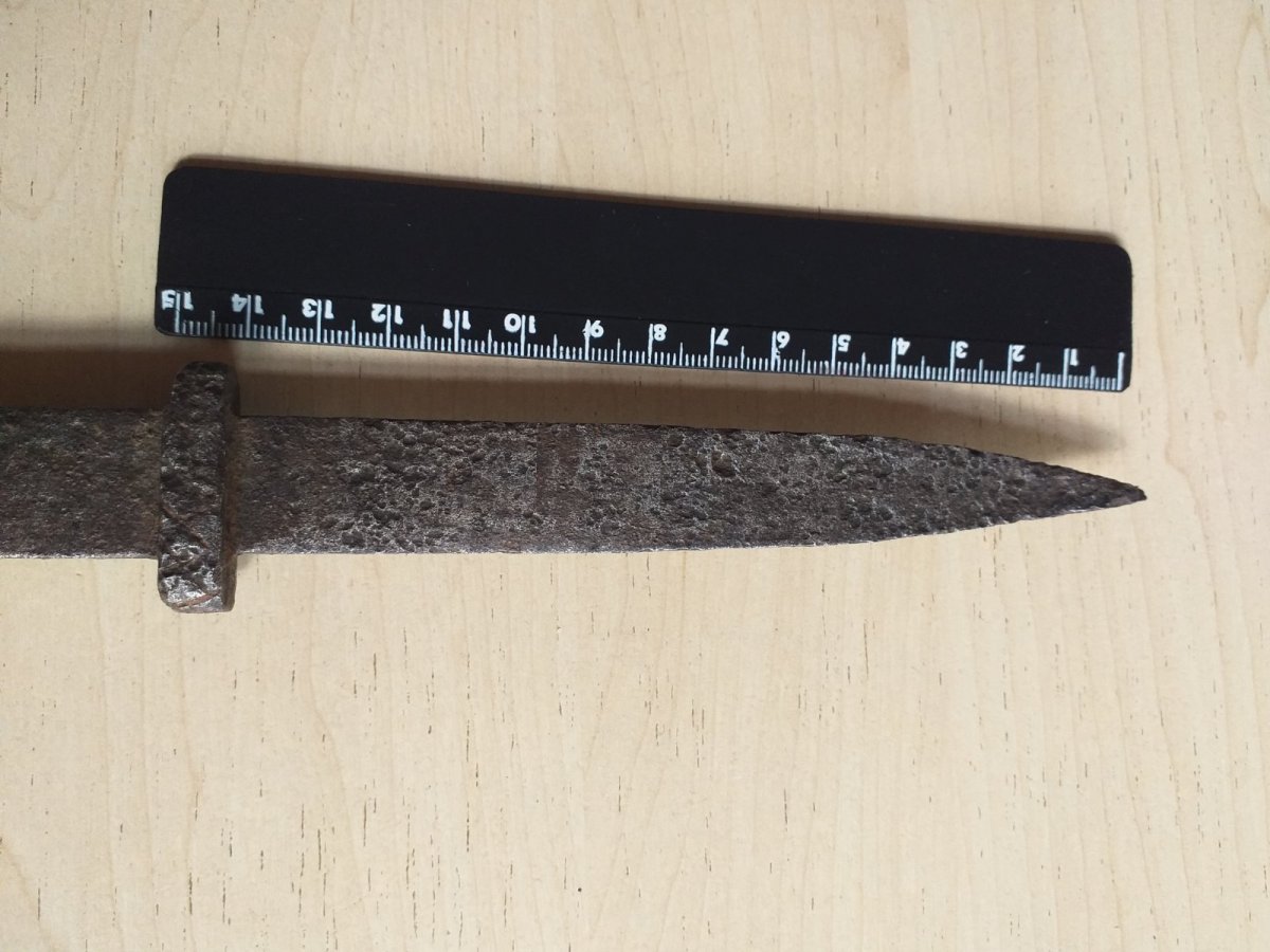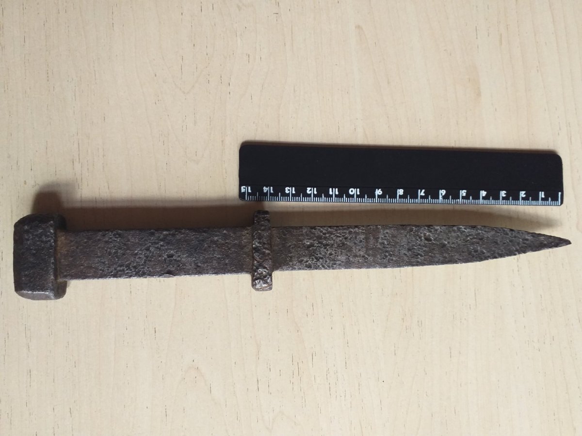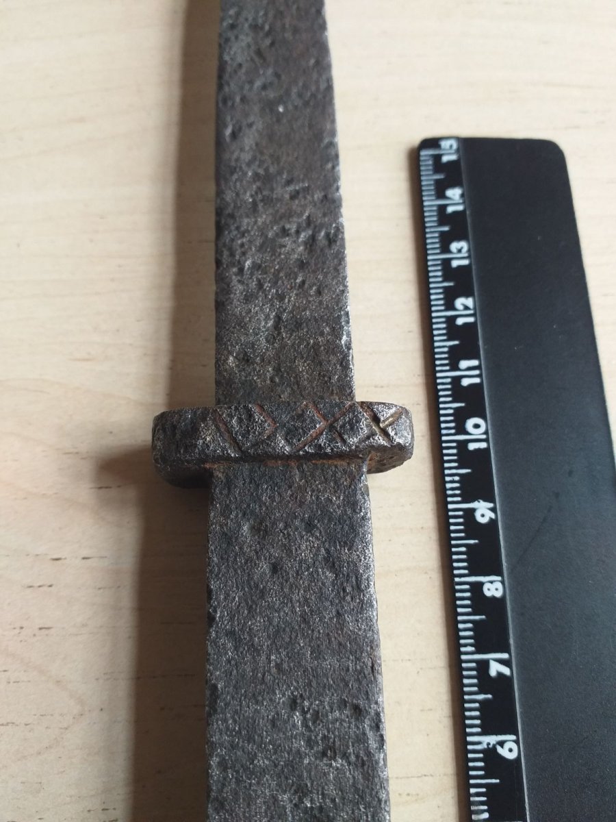 Самоделка кузнечная,рукоять в 3 раза толще и тяжелее клинка,проще поверить что его реконструкторы ист.Фехта посеяли чем в боевой образец.