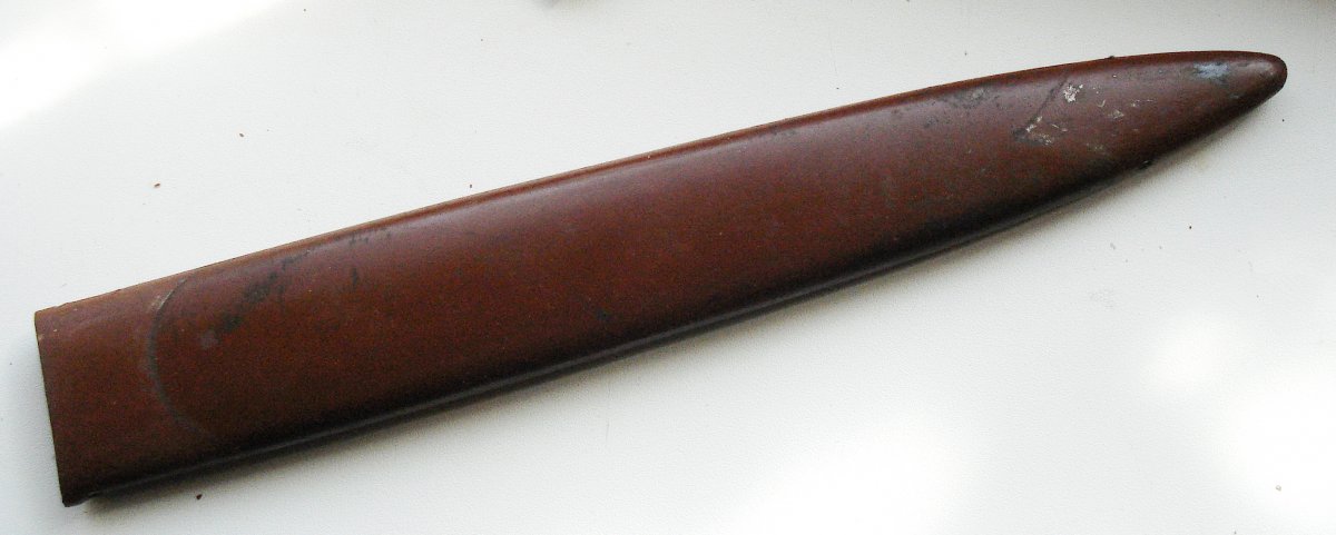 Навершием, надо понимать, Вы обзываете гайку (у немцев Endmutter)? Поделитесь, из какого металла, если не сталь, они (гарды и гайка) должны быть у поздних? Хотя на Ваших фото так и не видно клейма на кинжале, но ножны не ранние, это заметно...