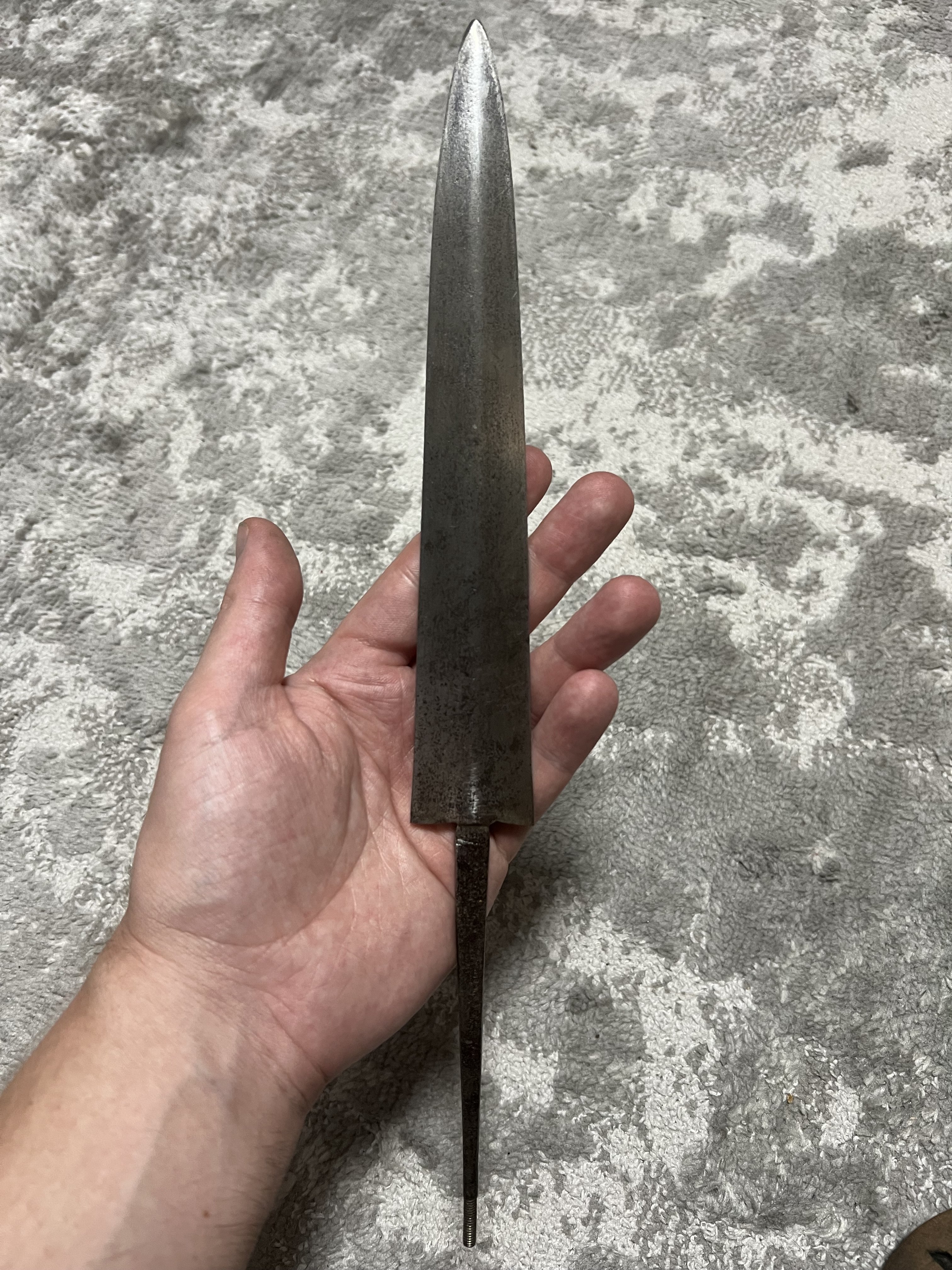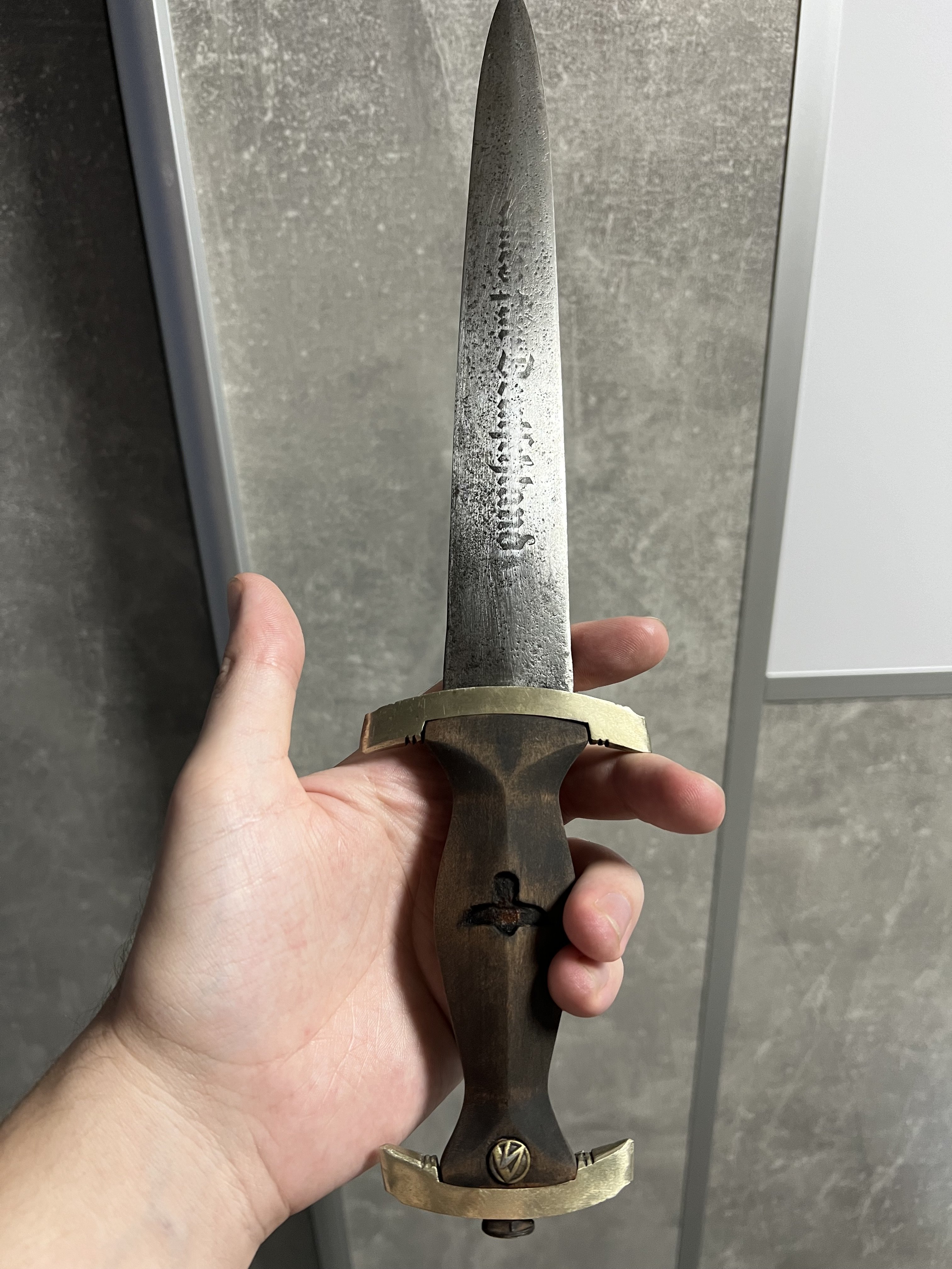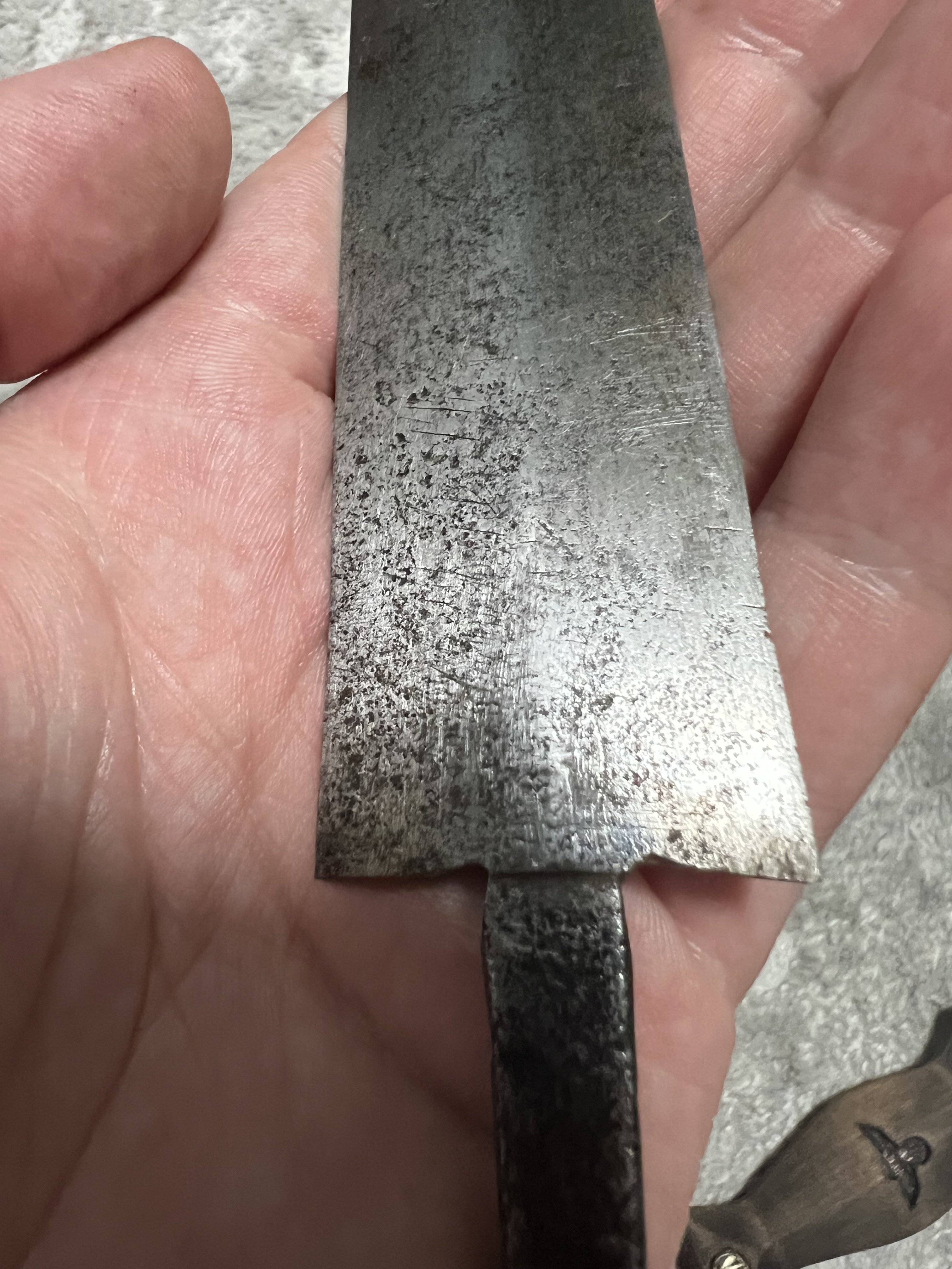 Бажаю всім міцного козацького здоровʼя!!! Попав до мене в руки такий предмет, прошу Вашої думки по предмету, по-перше, стосовно оригінальності комплектуючих. На фото намагався передати весь стан предмету та залишки клейма на лезі, якщо потрібні більш детальні фото, то зроблю. З повагою.