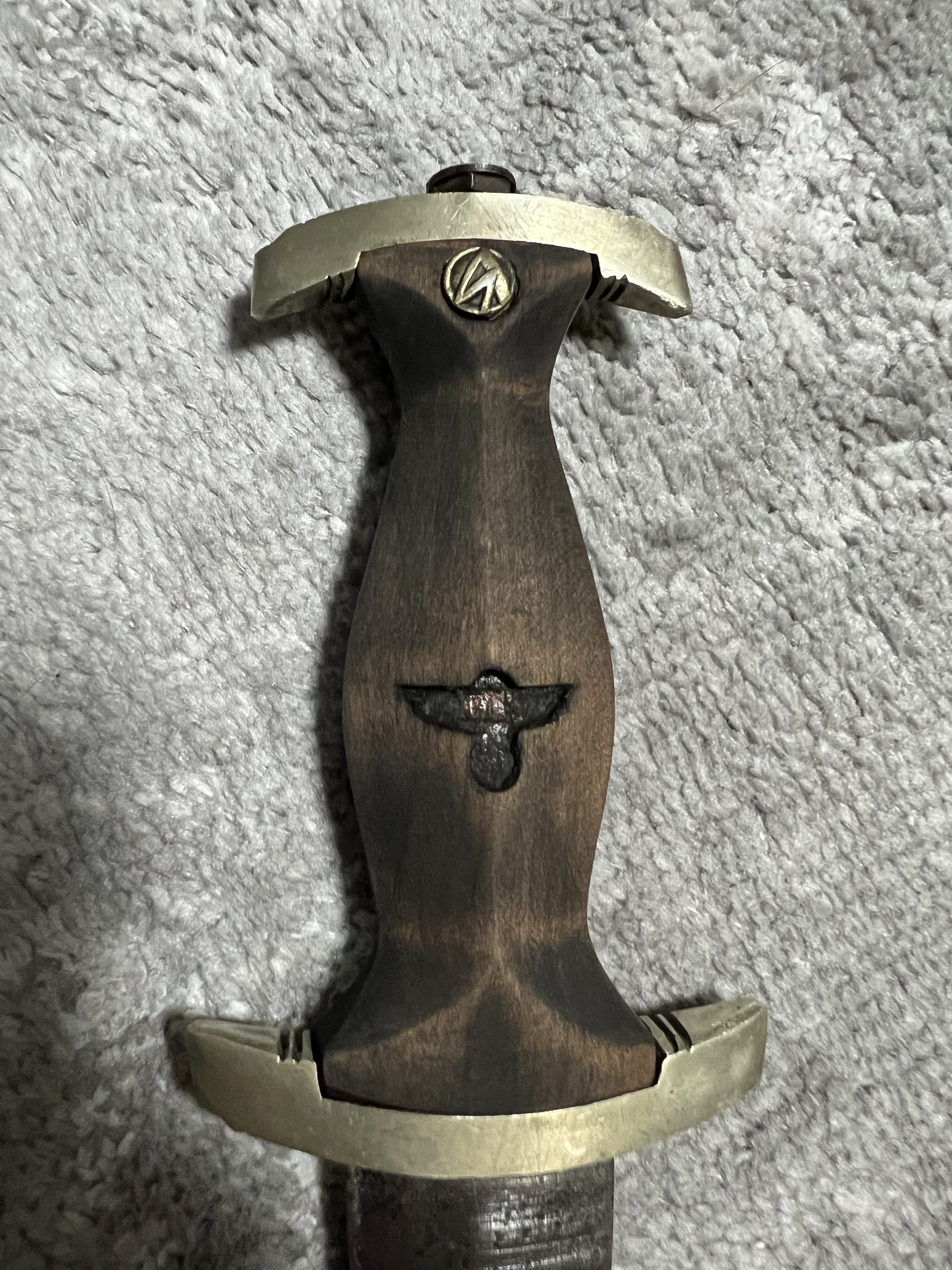 Руків'я хоч і дуже замучене,але оригінал стовідсотковий,як і гарди та гайка,орел і таблетка швидше за все копія.
