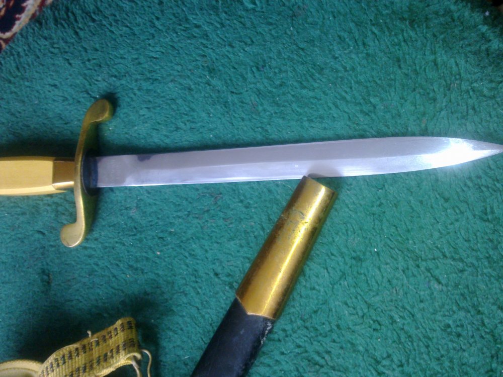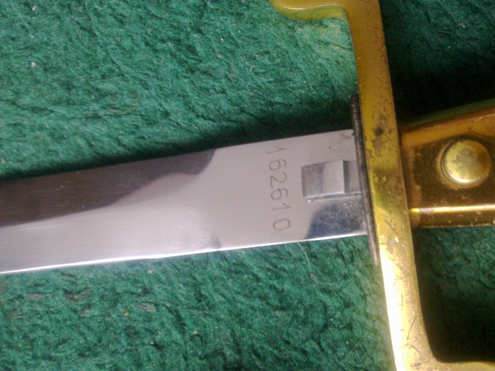 Толик, не обязательно. Видел неразобранные кинжалы СА с клеймом группы на лицевой стороне. Хотя это, конечно, исключение. Но, если совсем не придираться, то такого можно нахватать, не дай Бог. Хотя придираться тоже, конечно, нужно в меру. Состояние клинка не удивляет. Это далеко не самое лучшее состояние клинка, которое мне приходилось видеть. И следы от пружин остаются на девизе не всегда. Смотрите ниже фото одного из моей коллекции. Бесспорный оригинал.