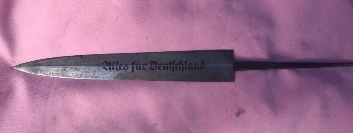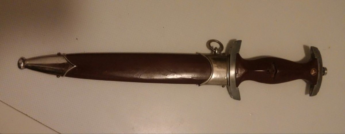 Ножны и рукоять кто-то по ходу покрасил в один тон не так давно,все остальное по этим фото видится оригинальным,но очень уж уставшим...По цене могу предположить как за набор комплектующих,около 300-400 долларов...