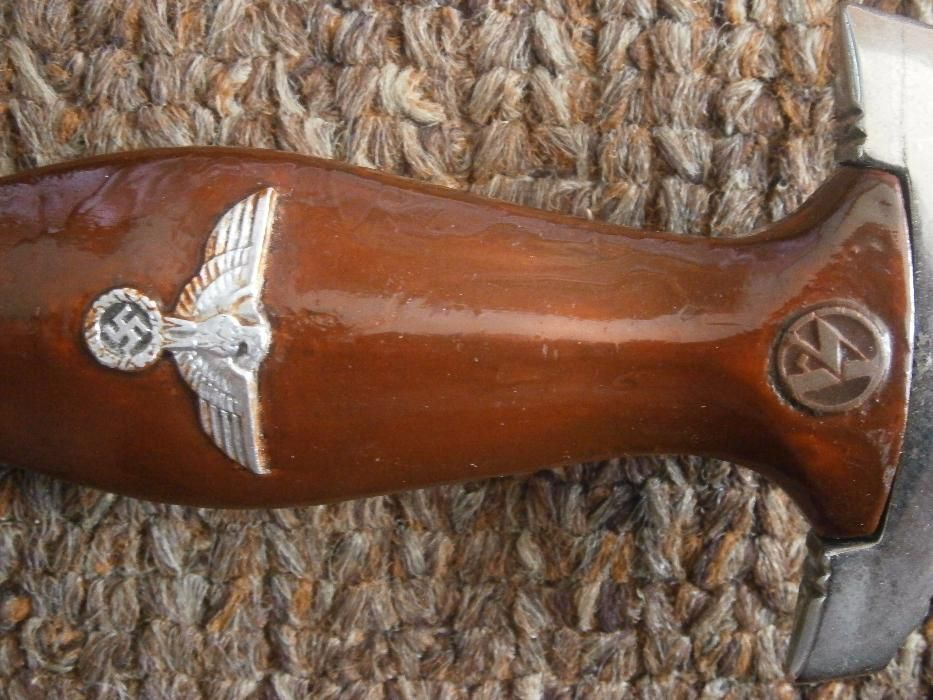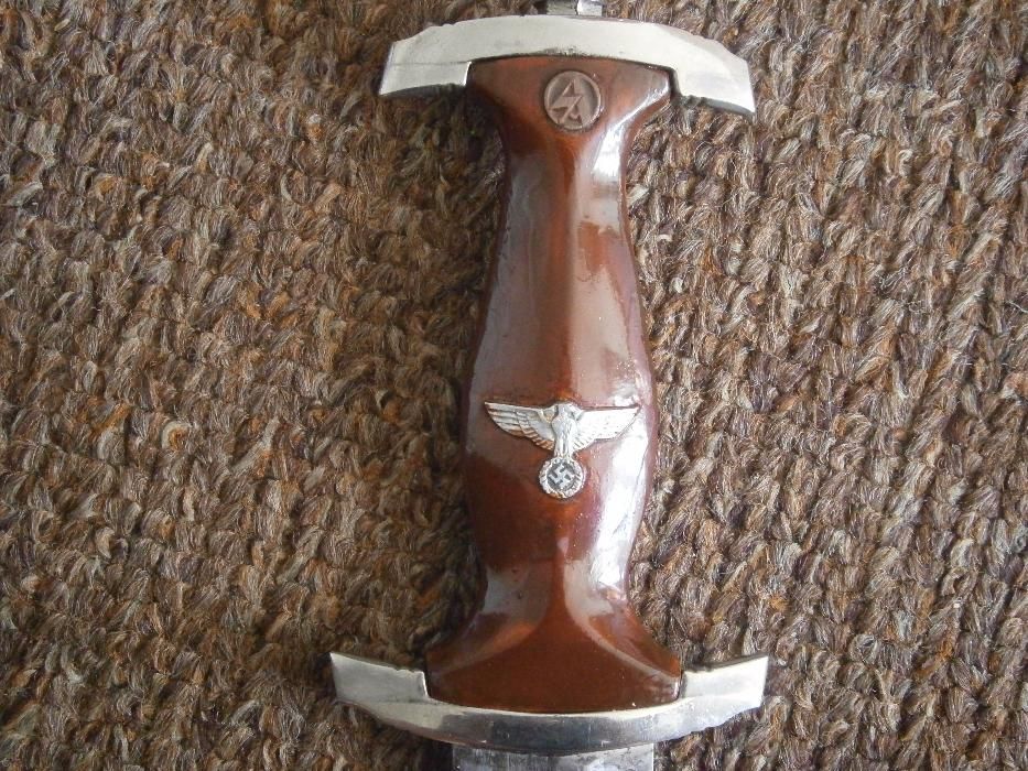 Дружище.. понимаю вашу настойчивость безусловно даже копии стоят денег. Оригиналы СА в сети лежат по 20-50 штук. Отличная копия до 2,5 может натянуть (когда все идеально, полный комплект, выдержана геометрия, размеры, отличная сталь, идеальное травление надписей, соответствие клейм согласно аутентичным предметам) Здесь иногда эксперты (через чьи руки прошли сотни клинов), не могут с ходу под микроскопом определить подлинность, а вы хотите, чтобы вам по этим мыльным силуэтам сразу цену выдали. 200 +- 10 000 грн... как-то так Если серьезно – по этому фотомылу – дешевая копия. Можно было бы предположить – в прошлом оригинальный предмет весьма ухайдоканый (только потому, что врядли какому-то идиоту придет в голову настолько жестко старить копию, а потом еще лакировать ее лаком для ногтей или красить заборной краской) Но глядя на сомнительное травление, таблетку, новодельную курицу, заполированные гарды – все-же копия, которая прошла 33 уличных войны. до 350 грн, я бы больше не дал (по этим фото) Как-то так.. может кто еще скажет что-то более умное, сорри С ув.
