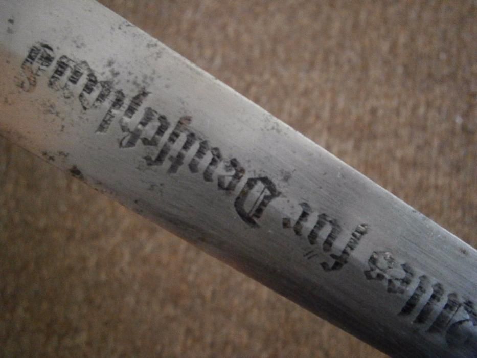 Зробіть крупно фото слогана клинка і клейма в макро режимі. Краще трохи збоку. За цим фото ніхто вам нічого достовірно не скаже. Особливо після колгоспного "поліпшення виду" Навіть якщо оригінал... цінність – прагне нуля, після "чудової реставрації"