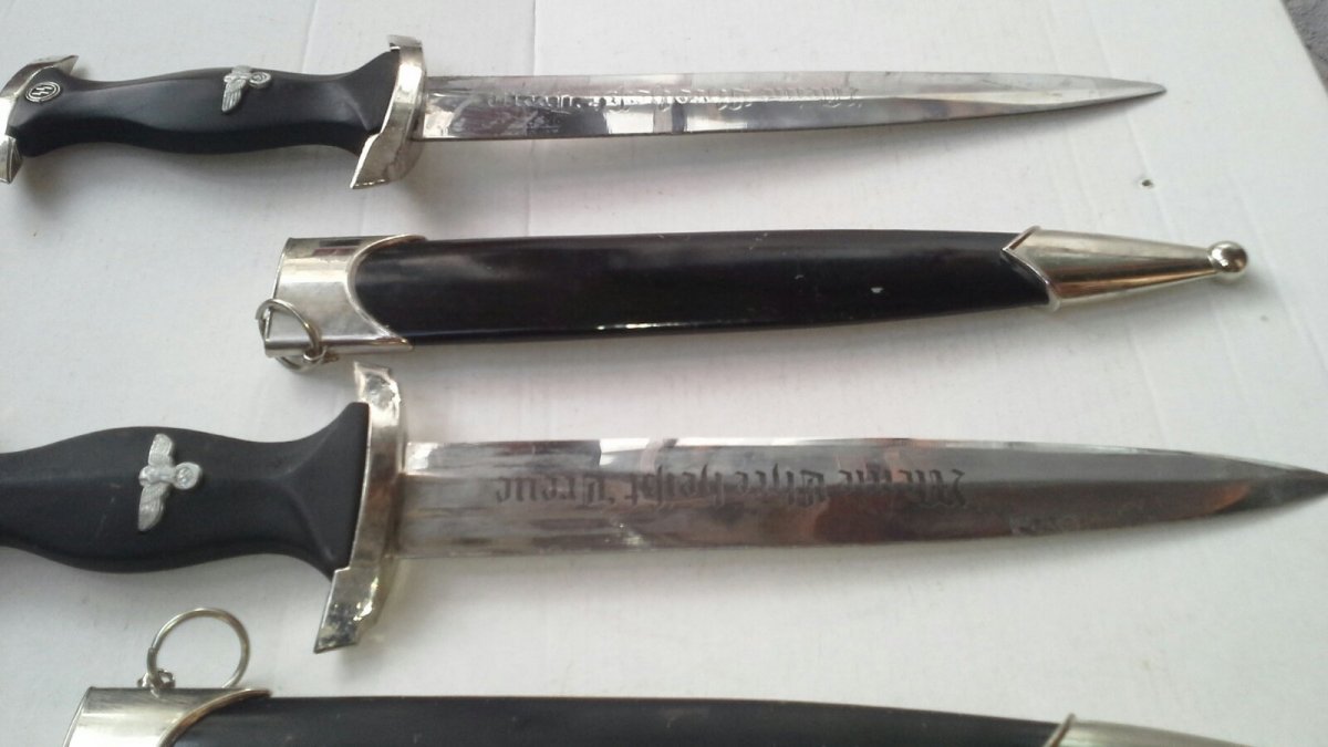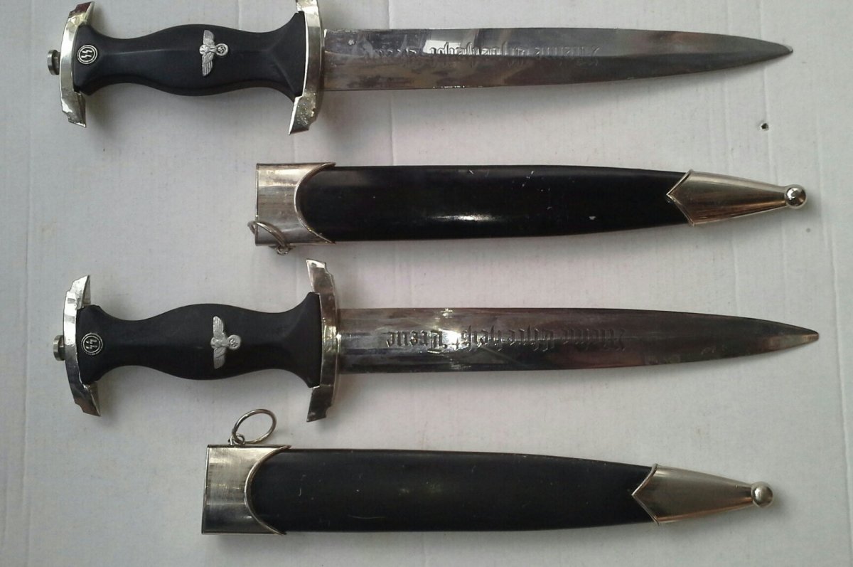 Пропоную Вашій увазі кинжали СС. ціна 2350 штука кинжал відрізняється від нших копій на ринку тим ,що він не силуміновий з дешевою пластиковою ручкою як робить китай чи навіть Денікс. даний кинжал виконаний з стальним лезом. Він є повністтю розборний. Його аналоги продавались на віолітті рік тому за 5000 грн. гарні репліки з колекціїї з нюансів , є потертість ножен.(використовувались на тематичних виставках по СС.) Також є нюанси по кожному,будуть вказані детально при описі. При купівлі будуть бонуси. + листовки на автентичному папері. Причина продажу, зміна інтересів на користь вермахту Прохання пропозиції по обміну , Запитання,торг чи інші коментарі в ЛС. в темі лиш резерв. Дякую.