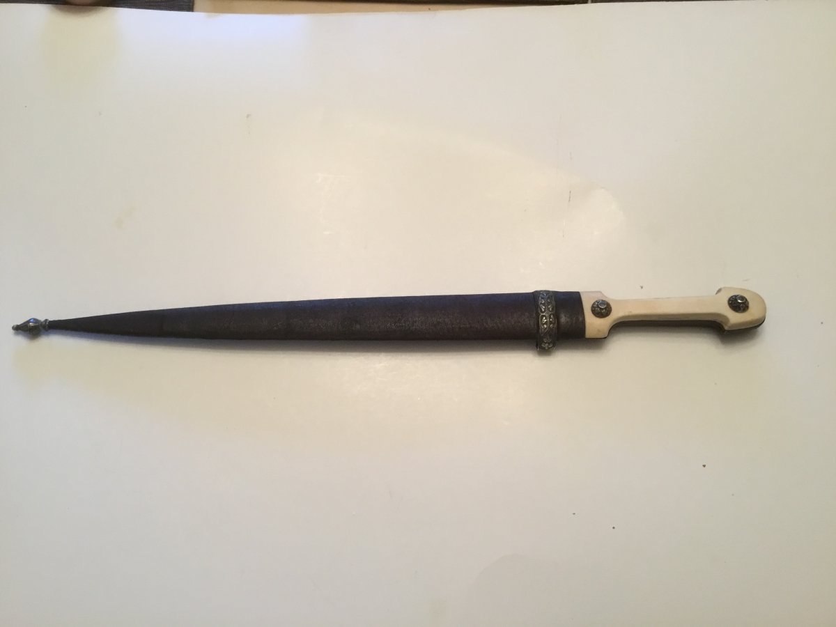 добрый день господа,купил вот такой кинжал честно скажу покупаю подобное первый раз. Кинжал продавался как грузинский но я понимаю Грузией здесь и не пахнет разве только современной Грузией. Короче говоря кто что думает прошу высказаться. Полная длина 50 см сам клин 35 см