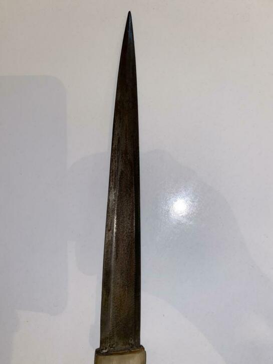 Оправу выкиньте - всю. Цветной металл на приборе рукояти оптимизма не добавляет(( клинок может быть интересен. Закавказье? Турция? Датировка, оптимистически - даже конец 18, начало -19 ст.? или позже. Но не 20 ст. Пессимистически - выточен из полосы точилом на электродвигателе недавно... Фото такие.