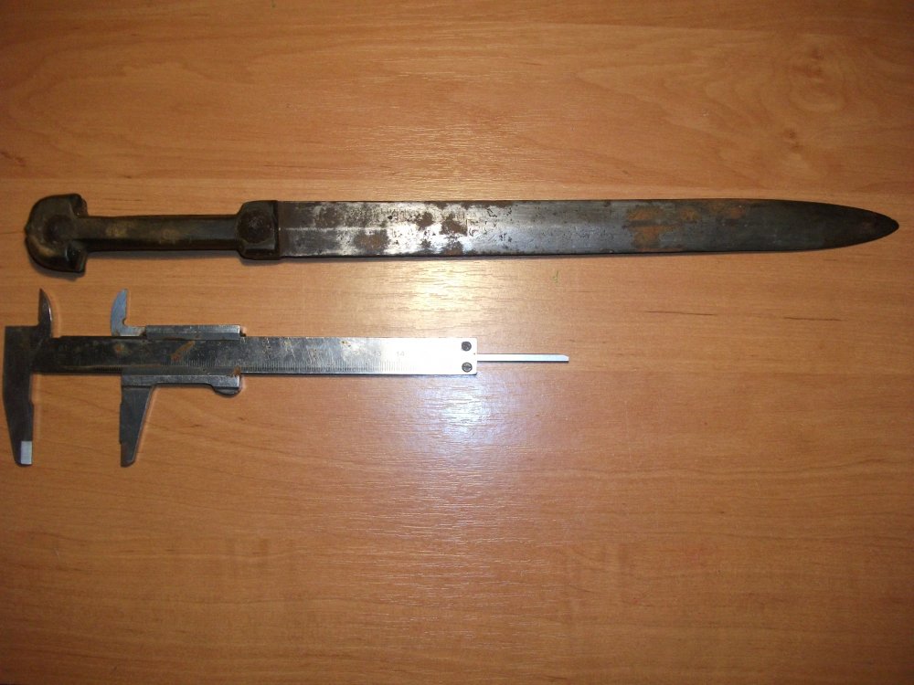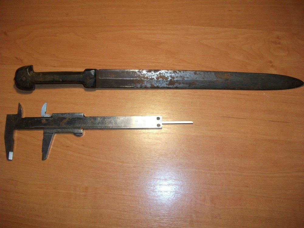 Определите,пожалуйста,кинжал. Длинна клина-28см. Ширина-2,4см Полная длинна-39см,думаю был длиннее,так как кончик сточен.