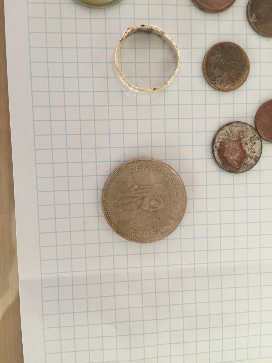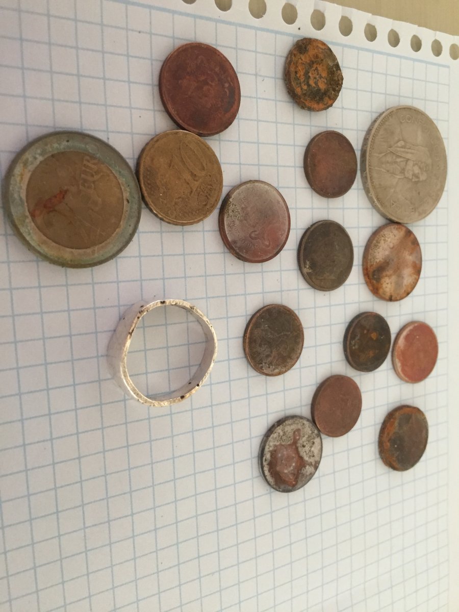 Первый день принёс такие находки)Были Ойро,перстень серебро,даймы,но порадовали 5 франков Швейцарии))Вода очень чистая,песок можно скубом,можно совочком.Лимассол.Да,инфа,в багаже прибор прилетел без проблем.