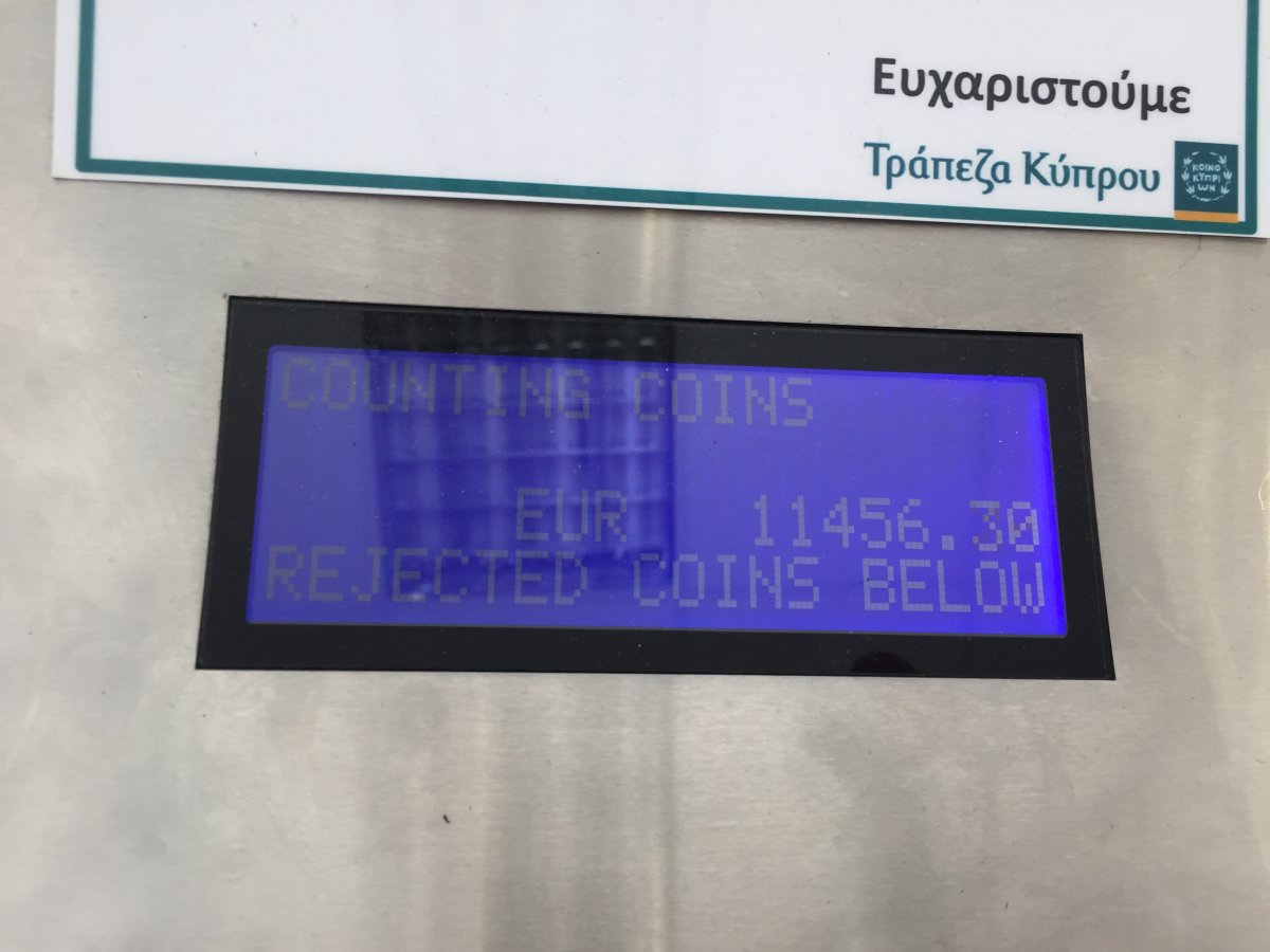 Для тех,кто летит.В банке Bank of Cyprus есть такие автоматы,меняют мелочь на бумажные.