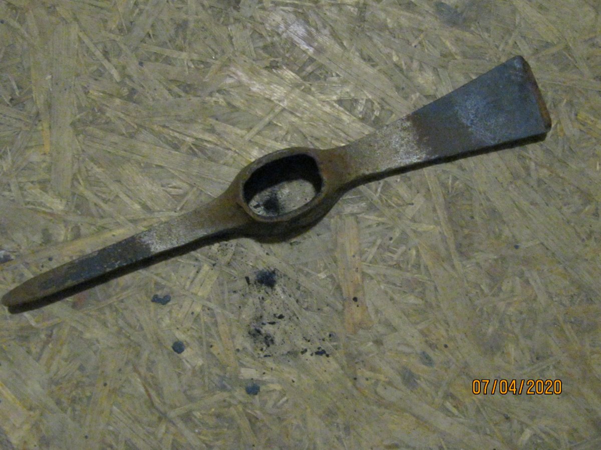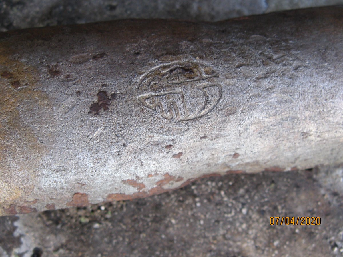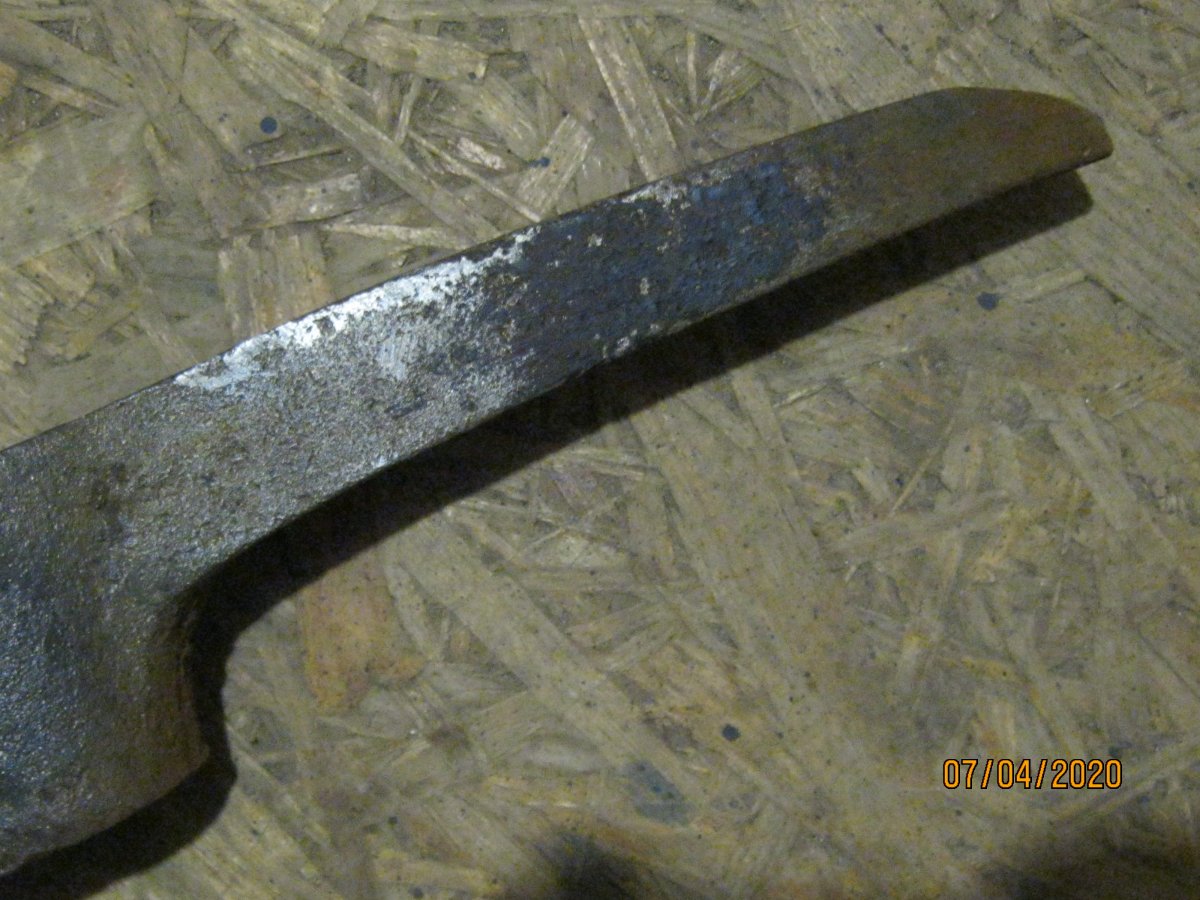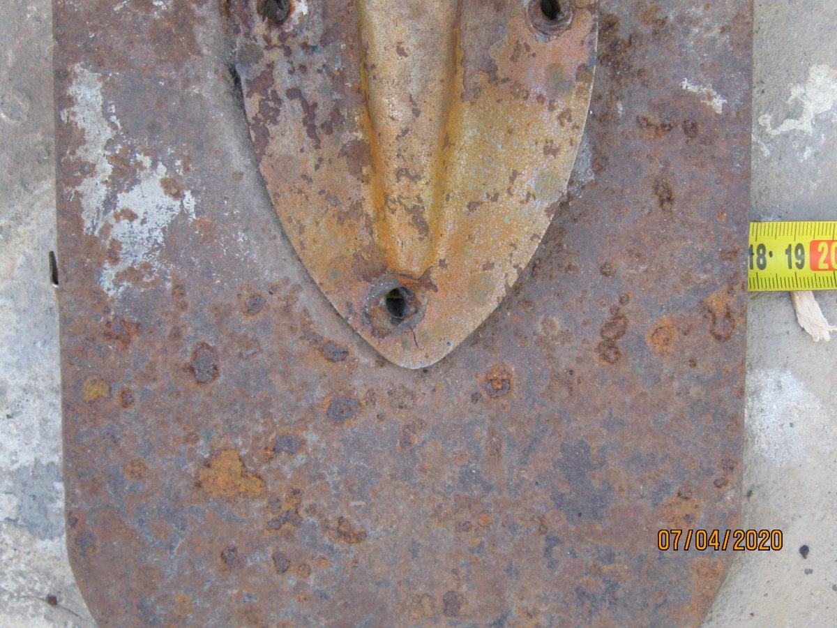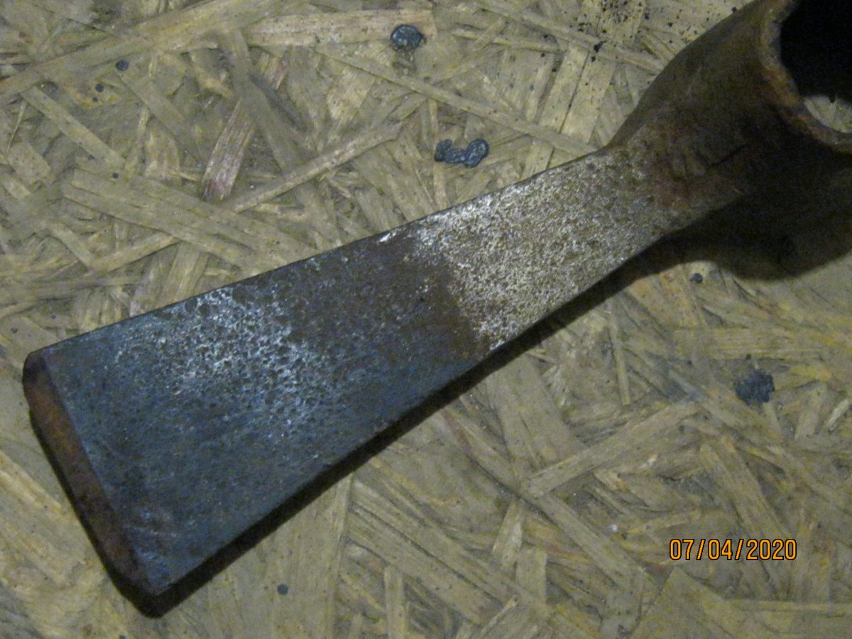Лопатка садовая, период начало 70гг ХХ ст., сейчас мелкие магазинчики продают такие новодела, но с гуанного металла. Заклёпки на сссровский лопате там по родне 3 шт, позже использовали точечную сварку. Клеймо такое есть, завода уже нет. У меня такая лопатка ещё в заводской смазке есть, там ещё кольцо как на бслке