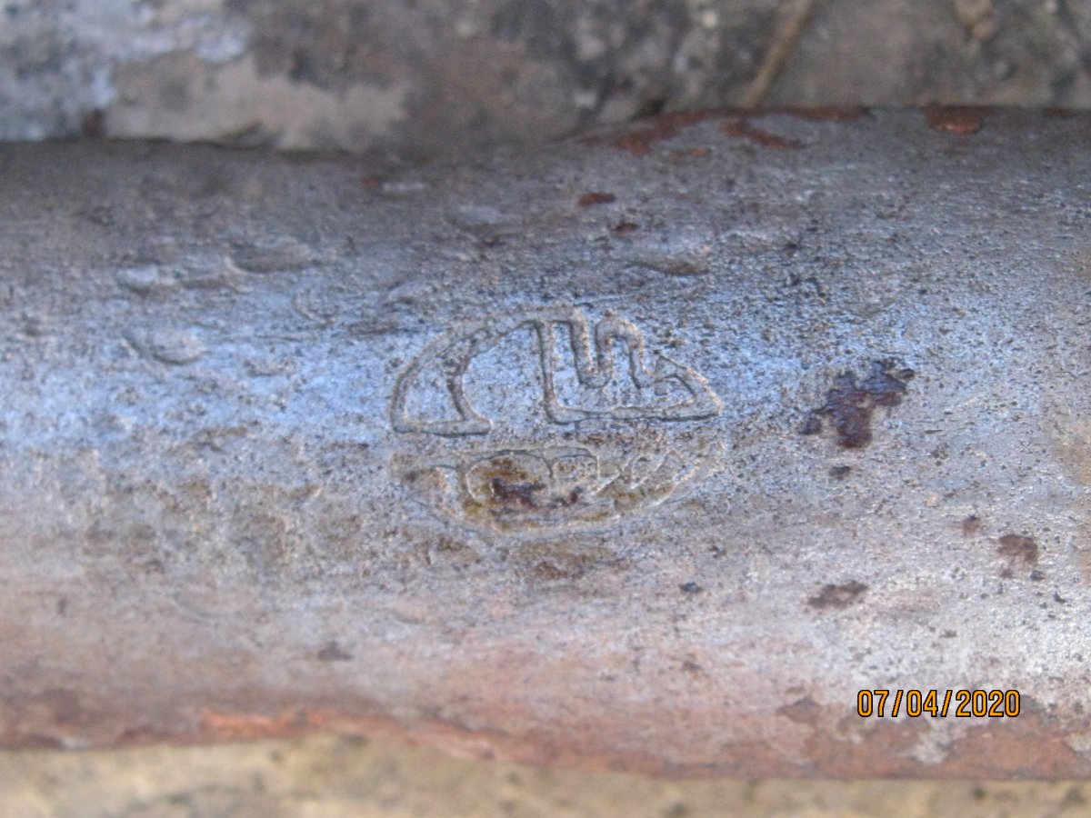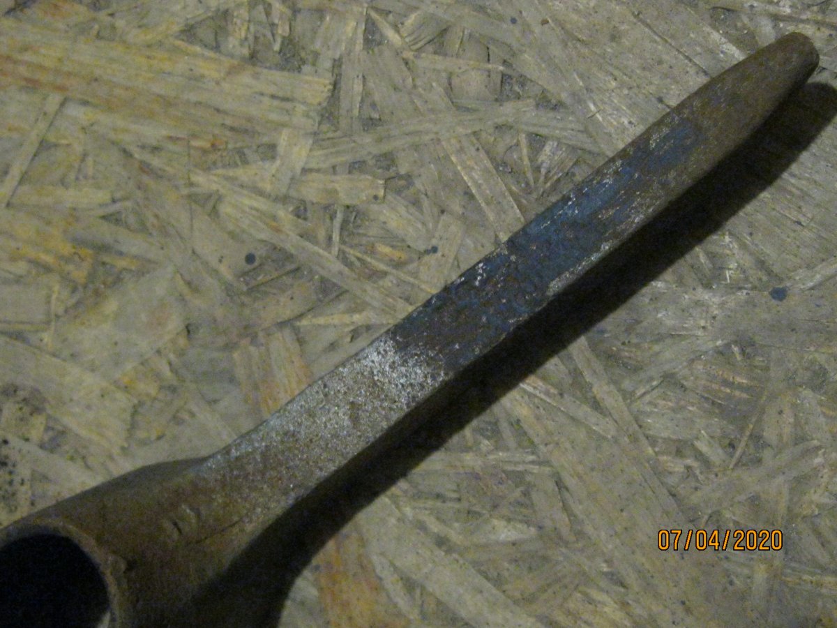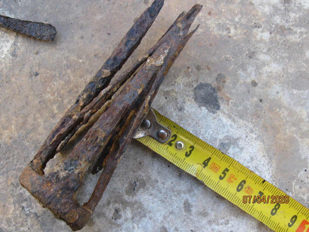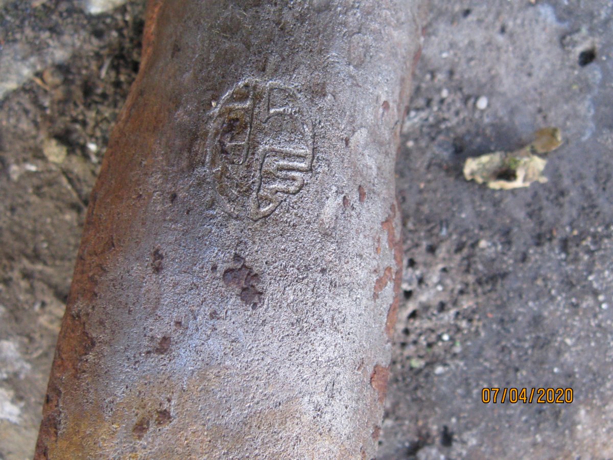 Лопатка садовая, период начало 70гг ХХ ст., сейчас мелкие магазинчики продают такие новодела, но с гуанного металла. Заклёпки на сссровский лопате там по родне 3 шт, позже использовали точечную сварку. Клеймо такое есть, завода уже нет. У меня такая лопатка ещё в заводской смазке есть, там ещё кольцо как на бслке