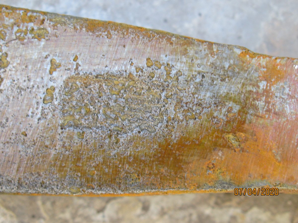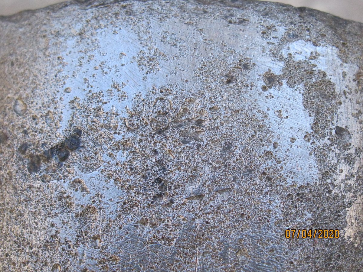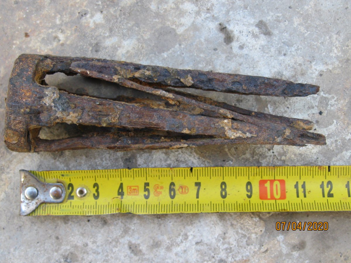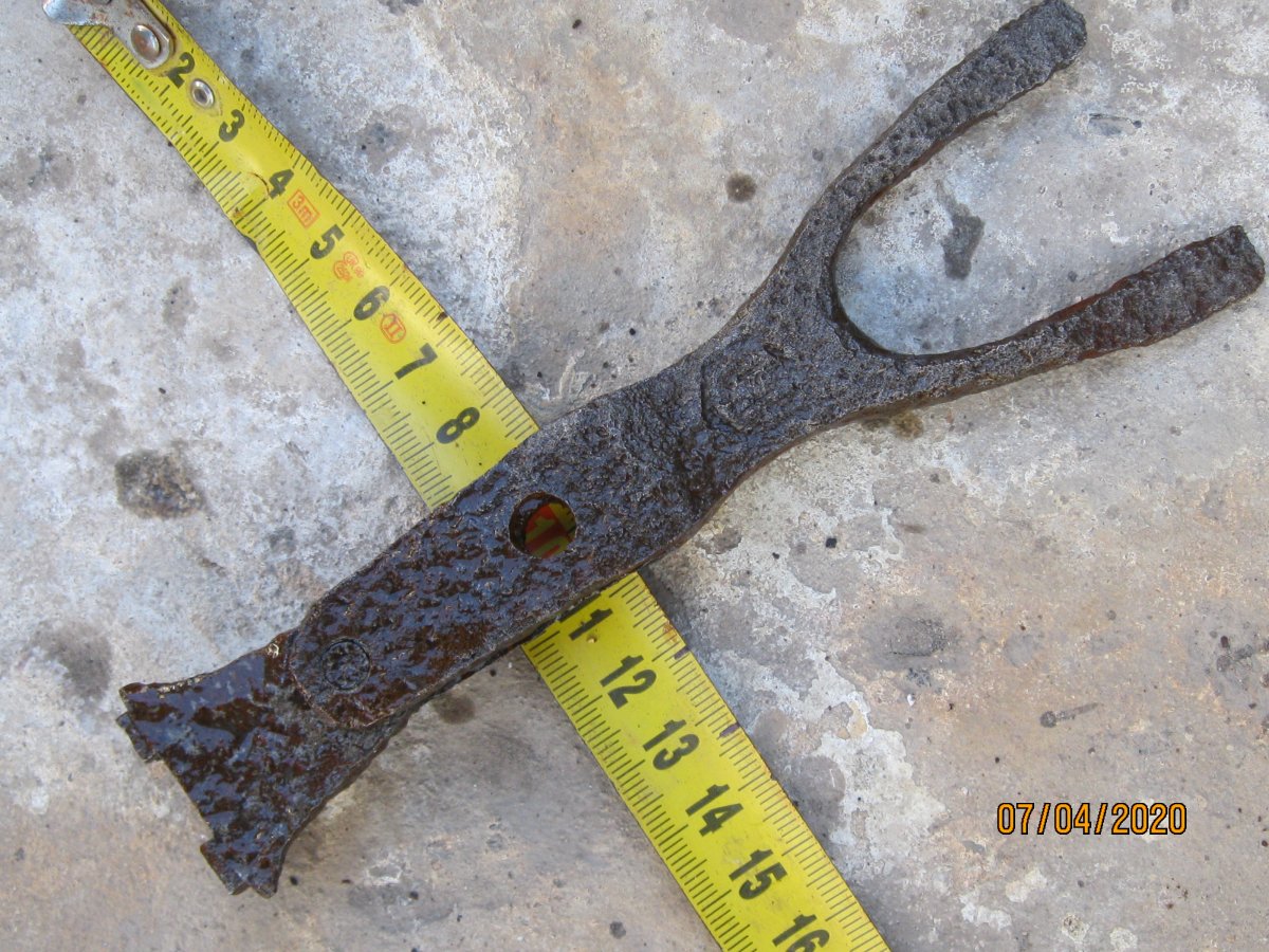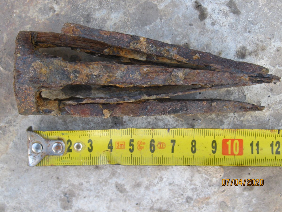 Лопатка садовая, период начало 70гг ХХ ст., сейчас мелкие магазинчики продают такие новодела, но с гуанного металла. Заклёпки на сссровский лопате там по родне 3 шт, позже использовали точечную сварку. Клеймо такое есть, завода уже нет. У меня такая лопатка ещё в заводской смазке есть, там ещё кольцо как на бслке