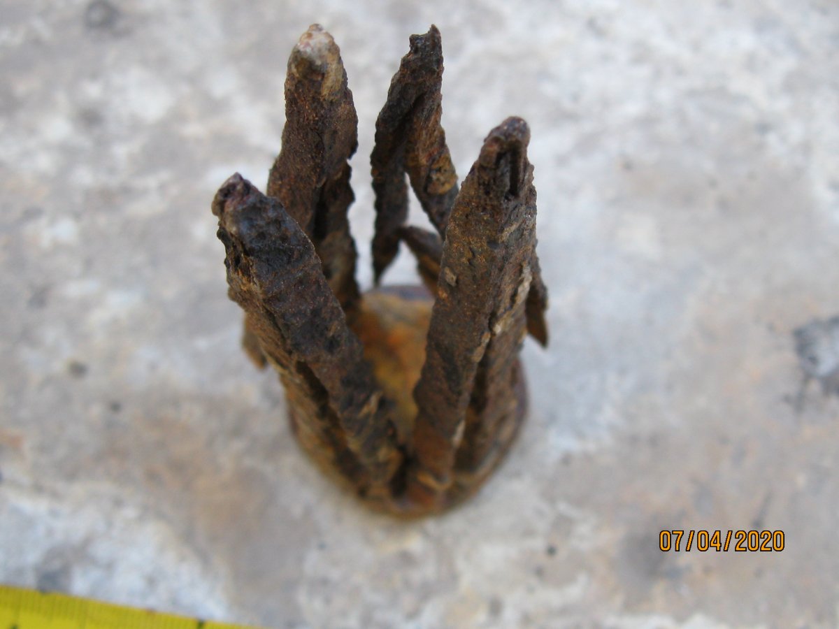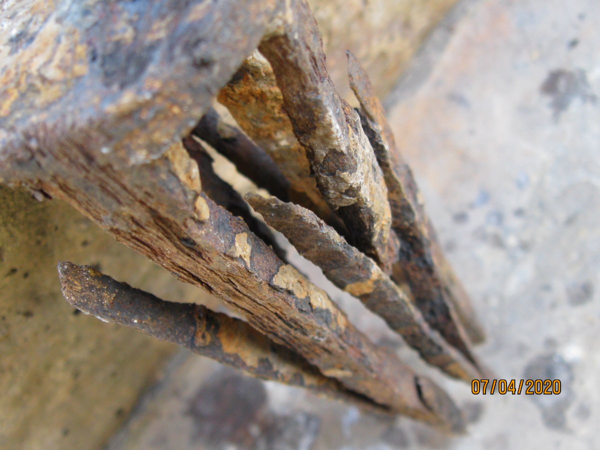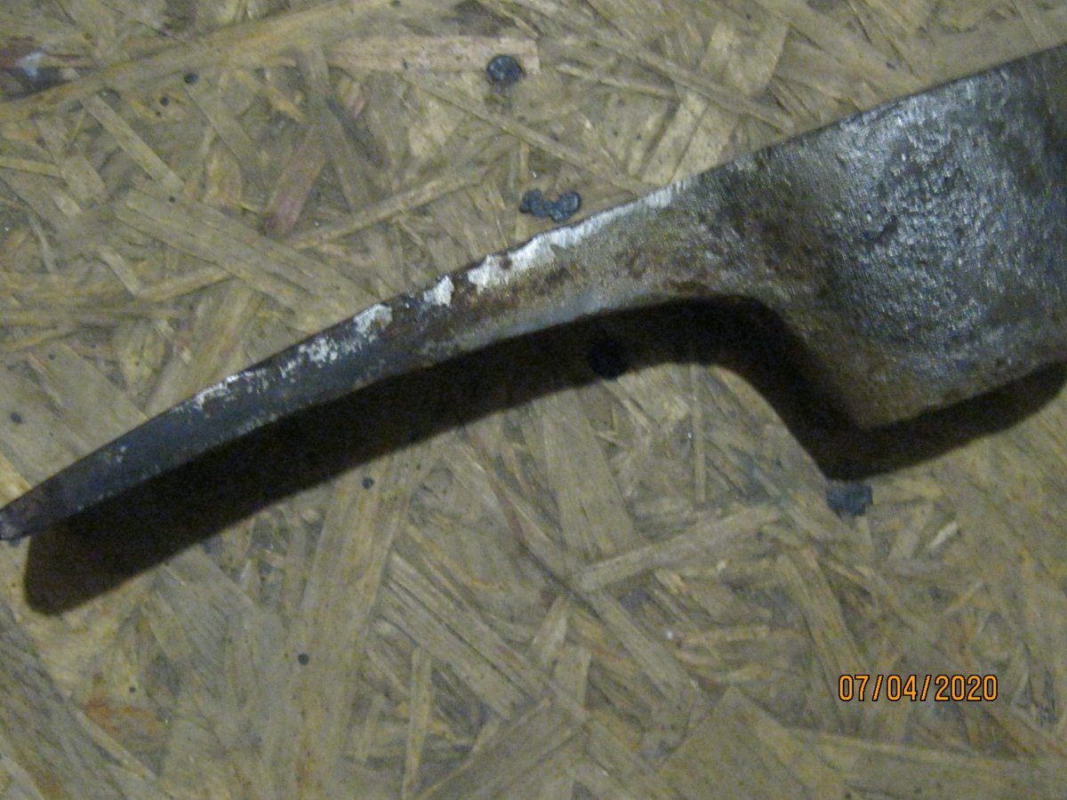 Приветствую. Ув. форумчане Помогите разобраться что к чему. 1-приусадебный коп. Клеймо, похоже на шестеренку, с другой стороны 1934. Чья будет? 2- кирка приусадебный коп. Клеймо не сохранилось. Возможно послевоенная? Может кто подскажет детальней. 3-Походная лопатка. " Перелопатил всех ганзов" и пр. Лопатки такого рода есть, с такими же клеймами. Но вот по стране изготовителя и периоде ,никто не высказал свое мнение. Я так понимаю, что заклепки устанавливал домашний " умелец" , хотя там явственно должно быть приварено точечной сваркой. 4- Хуторской коп, возле кузни попалась такой вот чудо предмет. Многослойная ковка, присутствуют медные вкрапления( на фото не отобразилось). 5- рядом с войной. На что- то крепилось? С Ув.
