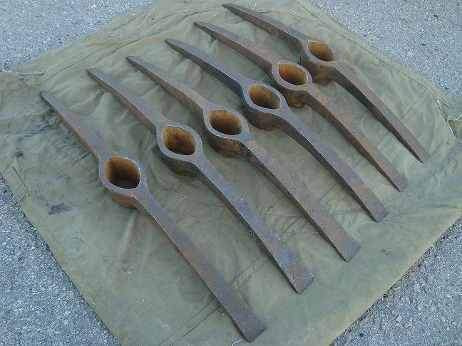 Кирки по 41году,найдены в одном месте,клейма присутствуют. Слегка почистил щеткой по металу,в поисках клейм,не кислотились.Местами присутствует родная краска.В даный момент в продаже две кирки(сфотографированы вместе).Цена за штуку-60гр.Пересыл на покупателе.