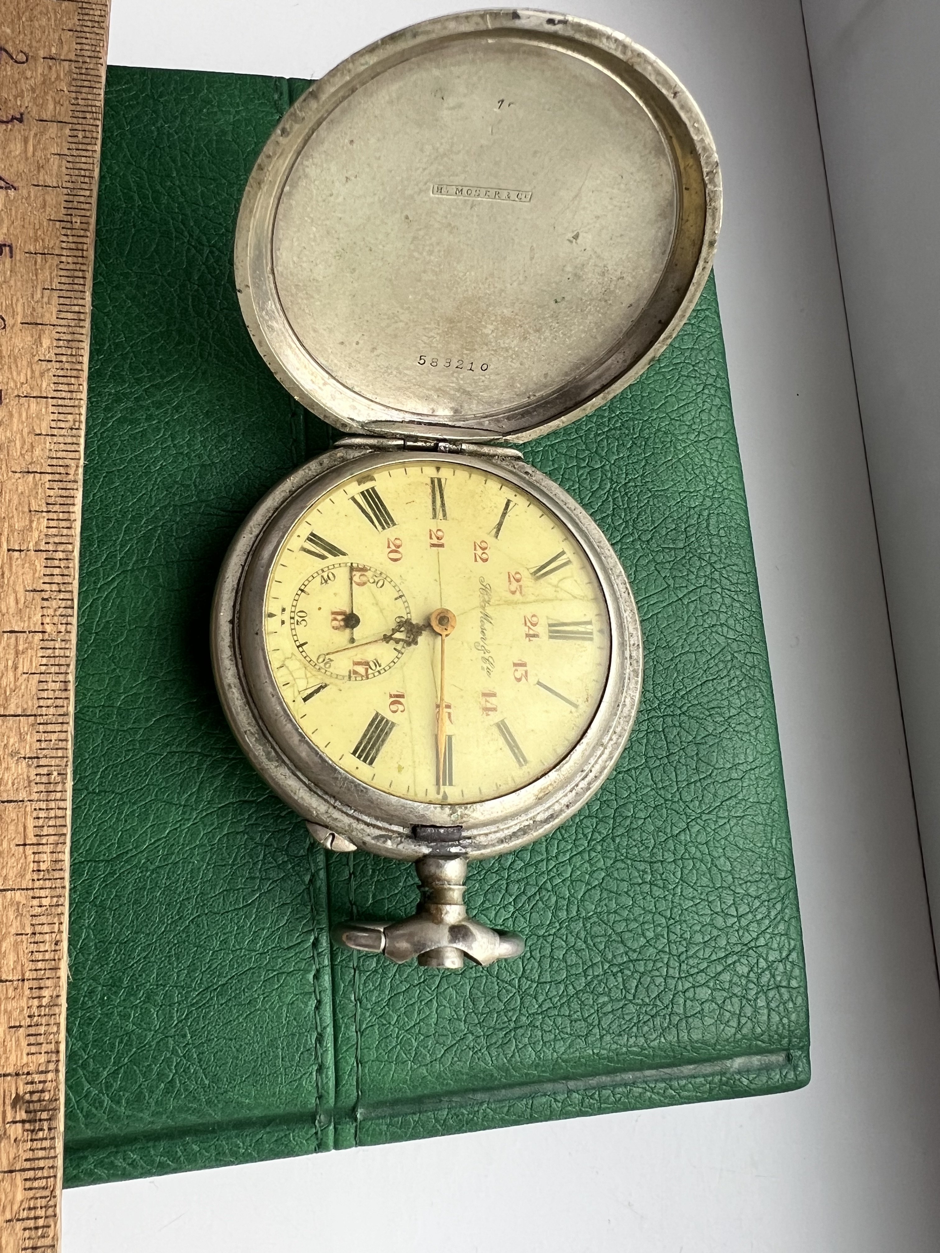 Вітаю! Ваш перший годинник (бачу, нажаль, в неробочому стані) - виріб легендарної швейцарської фірми Henry Moser & Cie (клеймо у вигляді фамільного щита Мозерів з літерами "HM" та мальтійськими хрестами ). Вона була заснована Йоганном Генрі Мозером у Ле Локлі, Швейцарія. Направивши свою продукцію до Росії, фірма знайшла величезний ринок збуту, і великий відсоток виробництва було спрямовано саме на російський ринок. Всі деталі годинників "Мозер" замовляли в майстернях Ле-Локля, а в Петербурзі з них збирали годинники. Деякі корпуси та циферблати виготовлялися в Петербурзі. В 1839 році відкрився Торговий Дім у Москві, про що говорять російськомовні написи "Г.Мозеръ въ Москве". На Вашому цього напису немає. Це означає, що деталі, циферблат і корпус виготовлено у Швейцарії. З 1826 року дещо змінились напис і звучання імені майстра на "англіцький манер" – "Henry Moser". Таким чином, Ваш годинник можна датувати починаючи саме з цього року. Годинник з одним лише написом "Hy Moser & Cie" на внутрішній стороні кришки та без назви марки (як у Вашого), був більш якісним і коштував дорожче З 2005 року мануфактура "Hy Moser & Cie" відроджена в Шаффгаузені, Швейцарія, і випускає цікавий люксовий годинник з особливими функціями. Що примітно, основний стиль та форми механізмів були збережені з оригінальних зразків старовинних механізмів Moser. Певний попит і вартість подібних речей є завжди, але рахую, що його адекватно може скласти лише майстр-годинникар, що працює з подібними ретро механізмами, але й на мою думку, цей годинник і в такому стані коштує чимало.