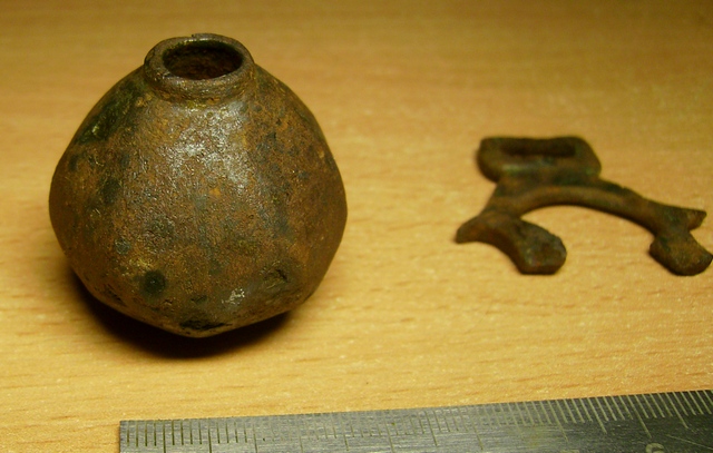 Господа! Сегодня (Михайлово чудо) Отправился в лес по старым местам!Погода дрянь-Дождь! Походил буквально пару часов! Попался кистень и "Швейный набор"! Рога маленькие -Нашол на прошлой недели! Сегодня Недалеко от того места попались "Огромные!" В Низу под рогами лежит метровая линейка!