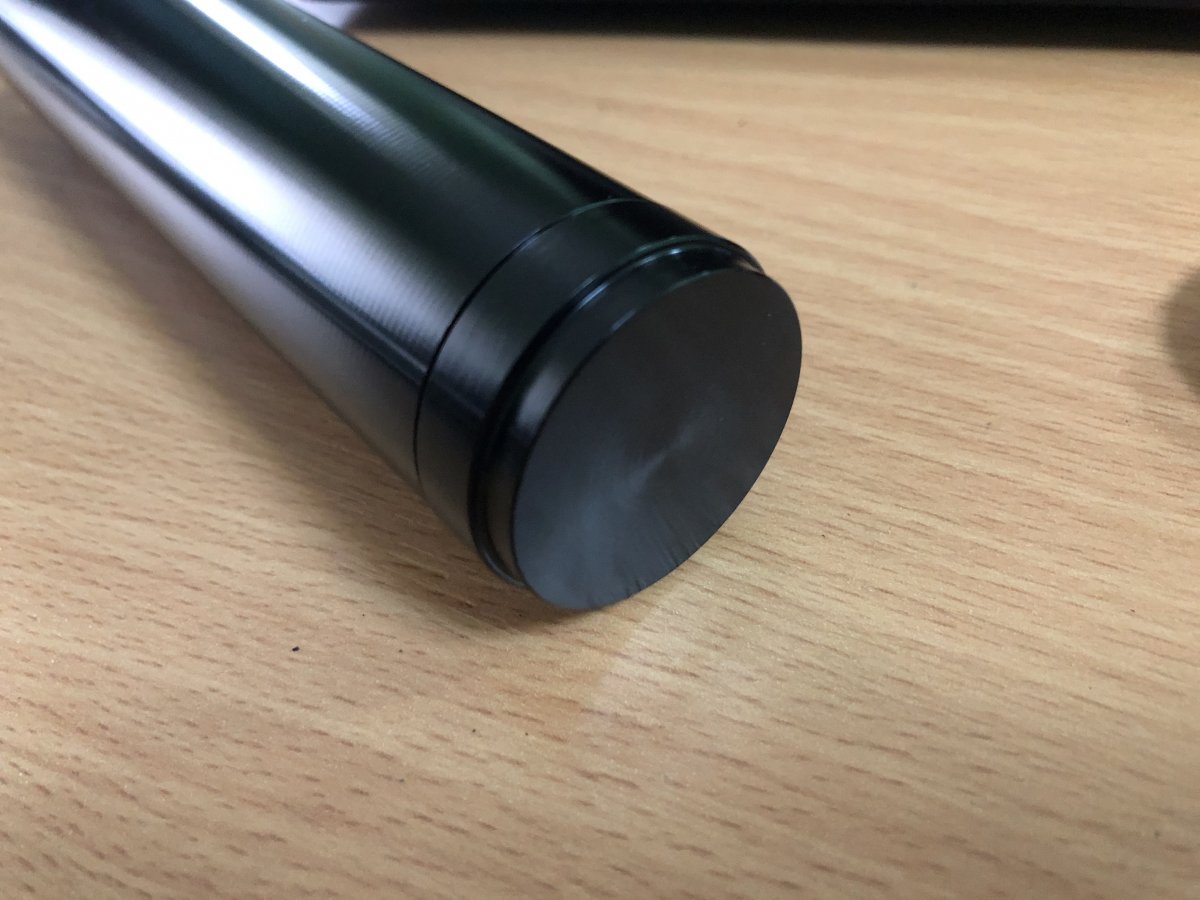 Я ради эксперимента заказал подобный глушитель. С фрезерованной сердцевиной. 130х38мм. самый маленький. Анодированный алюминий.