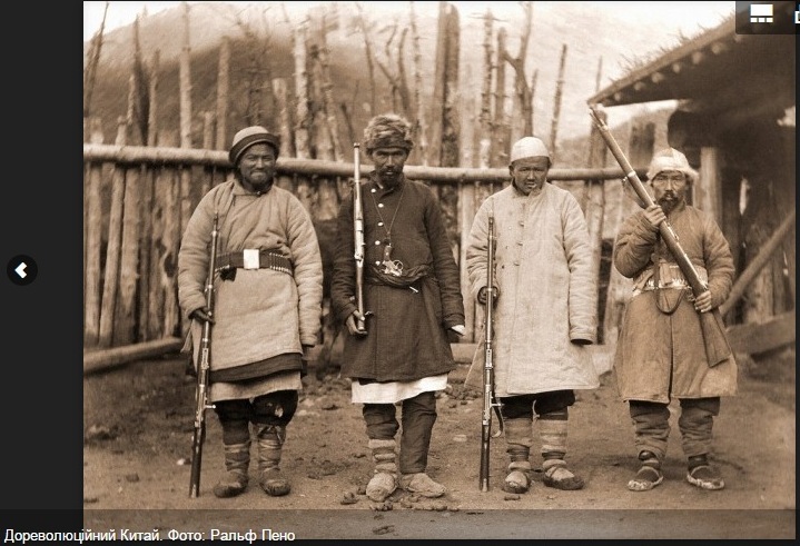 та да..якісь лапті .обмотки. припускаю ,що це початок 20 сторіччя ,мабуть Маньчжурія .можливо повстання Іхетуанів чі як їх звали Боксери. тоді частина китайців була на боці європейців . гвинтівки не знаю...чії..в одного реавольвер.. точно це початок сторіччя . до 1910 року. там написано :до китайської революції. тоб то до 1910 року.