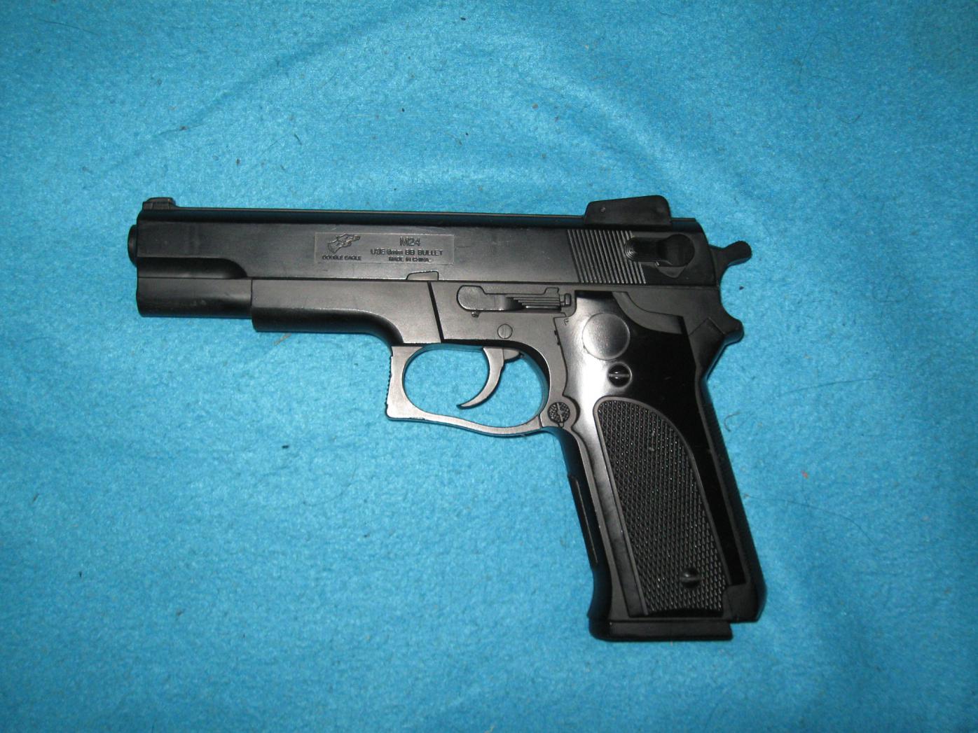 А что о нем подробно писать,вот он!Цена до кризиса была 40 гривен.Правда при стрельбе надо затворную раму постоянно дергать.Влез в ТТшную кабуру(какбы трофейный).Все из пилистмассы,стволик алюминь.Типа Хай-Пауэр. ;).