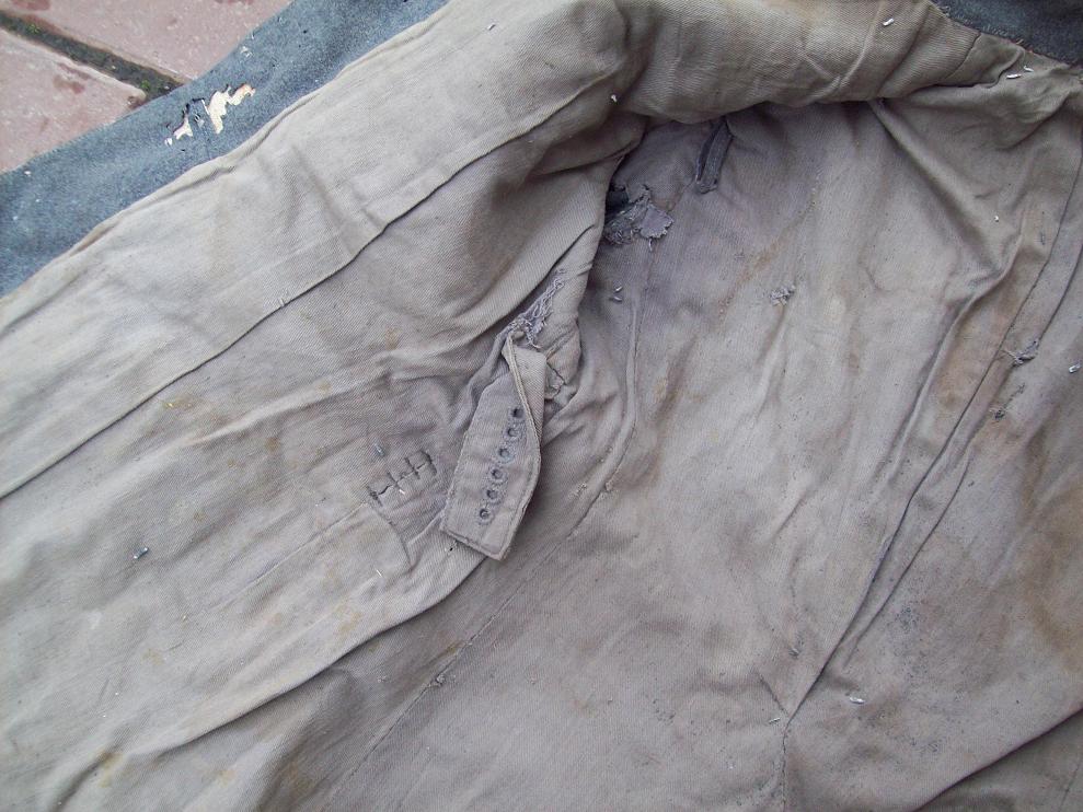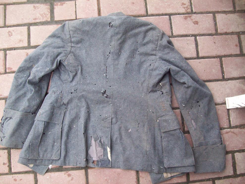 Камрад, завидую Вашему зрению ... по данным фото можно глаза поломать пытаясь рассмотреть такие особенности ... посему, думаю моя просьба будет справедливой и многие меня поддержат - выложите нормальные, качественные фото лапсердака с деталировкой съемки в тех местах, где предполагалась обшива (нагрудная нашивка, петлицы, погоны) и награды (левый карман) и четкие фото штампов на подкладке!!! ... т.к. по данным фото видно валяющиеся на земле предметы схожие по внешнему виду с элементами униформы
