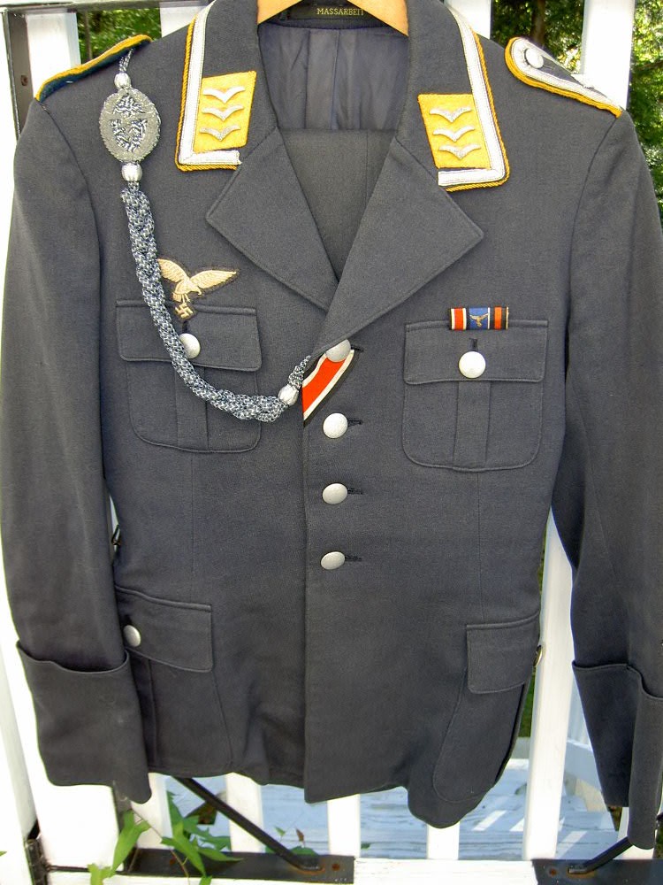 Нету пятна от споротого орла люфтваффе над правым карманом,штампы невоенные какие то,от наград-знаков есть петельки? Предположу,что форма гражданской авиации.
