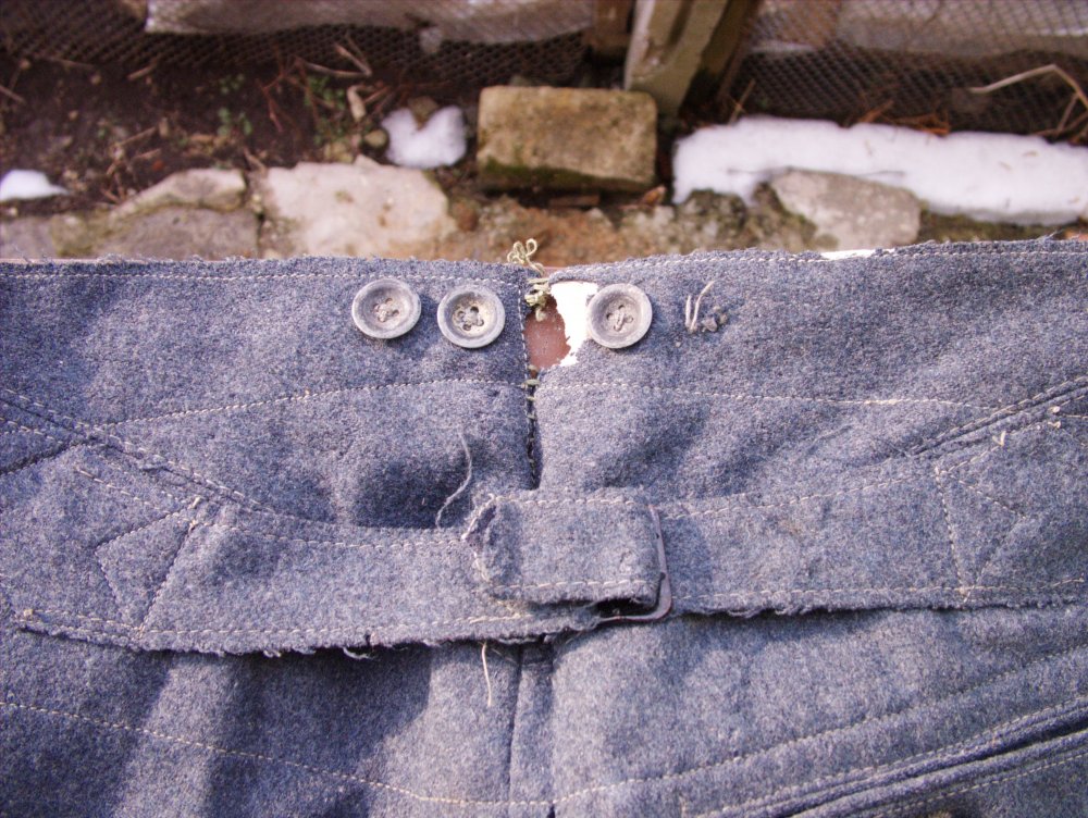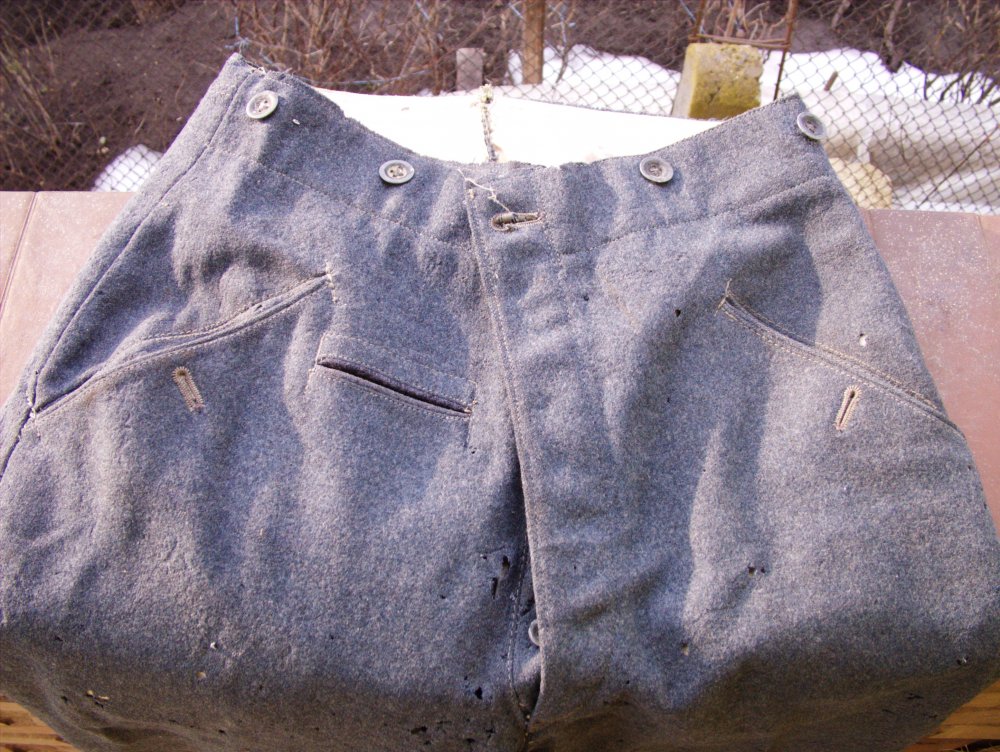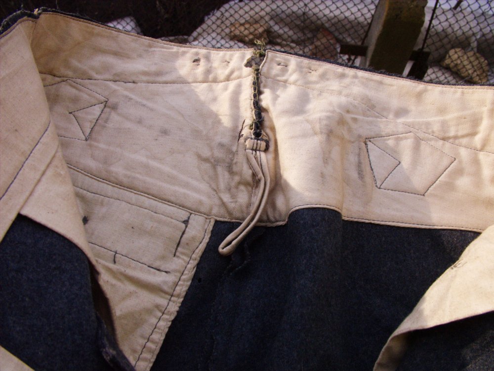 Стандартный Тухрок Люфтваффе и петелька под знак тоже на кармане( как вам нравится) Клейма правильные, имущество Люфтваффе. Нет фото штанов спереди ( непонятно), но похожи на прямые парадные штаны