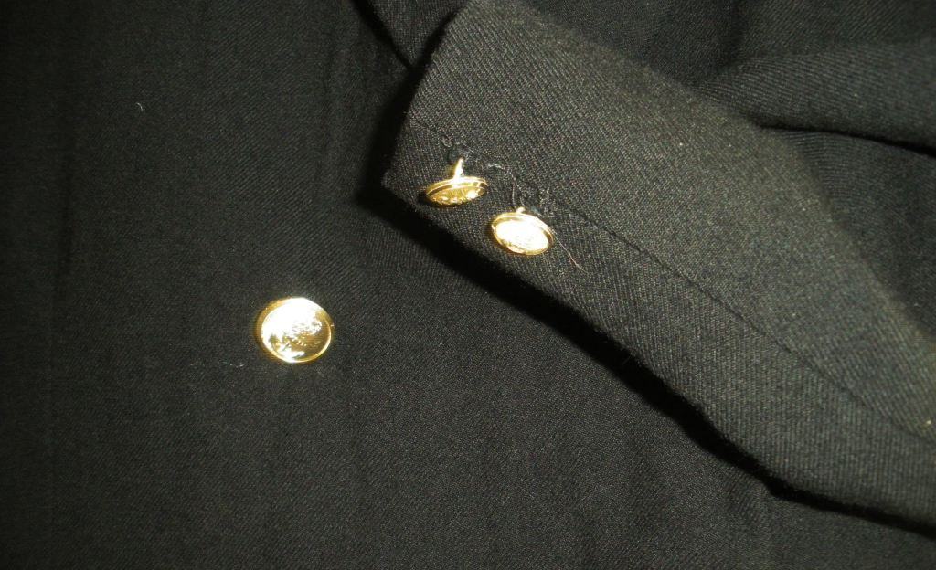попался вот такой китель , двубортный , черное сукно , одна пуговица не родная , всё на фото