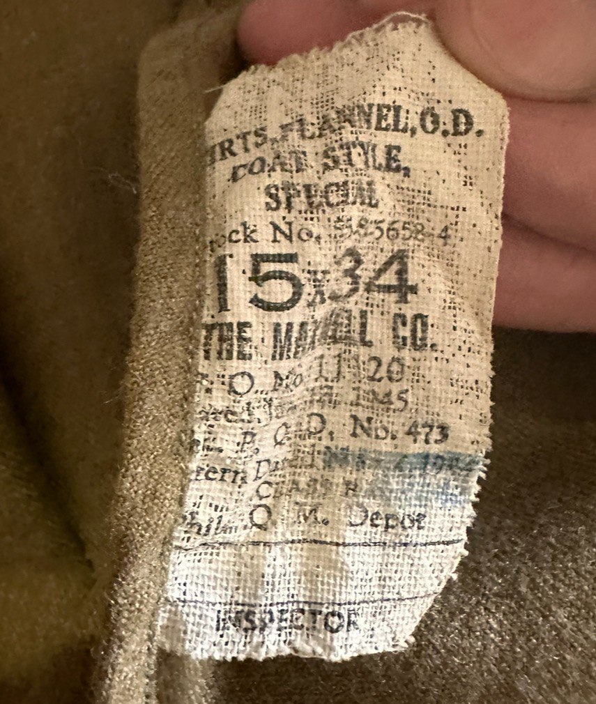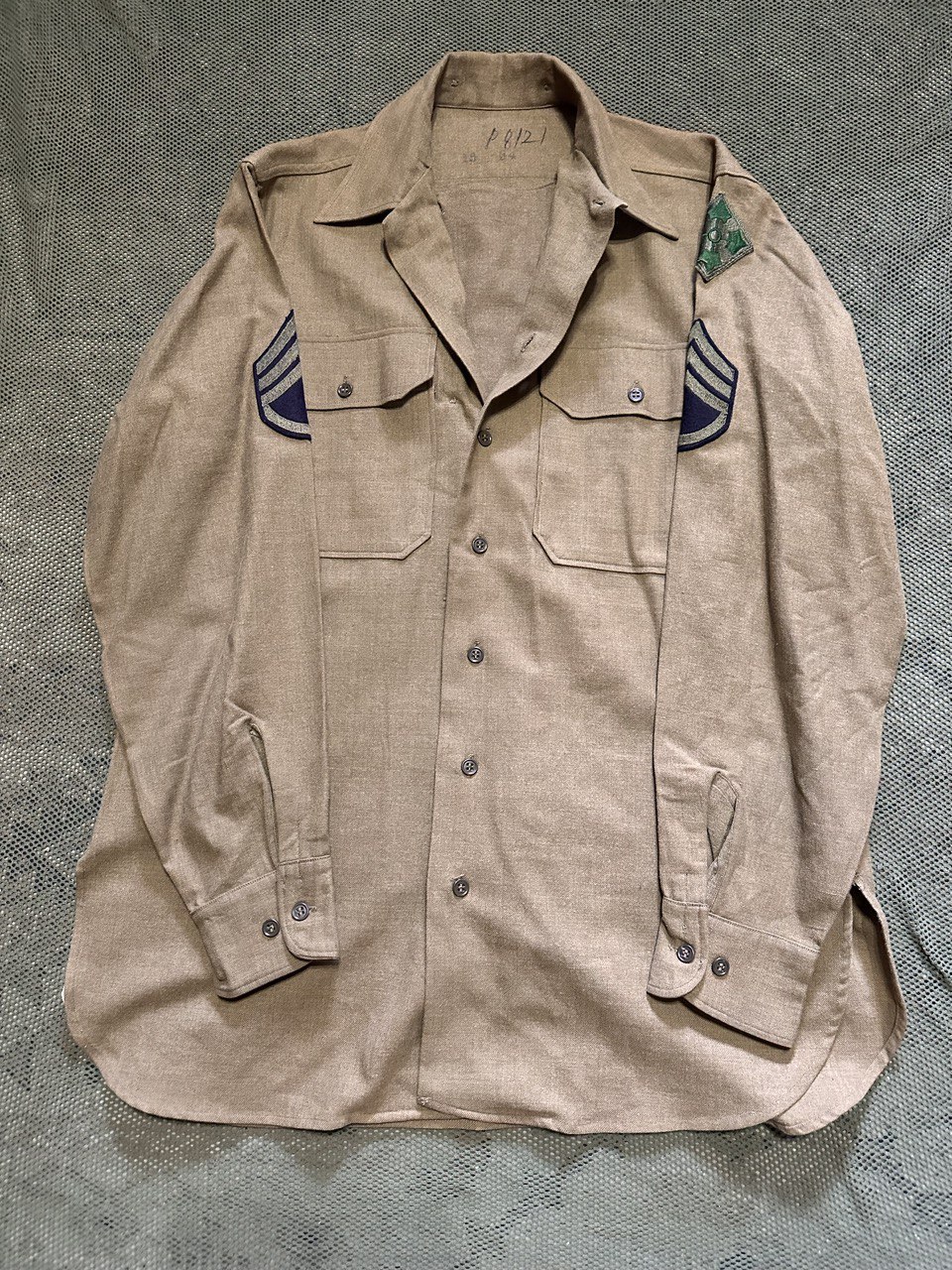 Доброго! Сорочка армії США, хакі Клас В із довгим рукавом, судячи із нарукавних 2-дюймових шевронів, на період із 1948 року десь до кінця корейської війни. Так як нарукавний знак 4 піхотної дивізії, я б припустив, що на період 1951-1956 рр., коли дивізія перебувала у Франкфурті. Можна фото лейбла повністю? З повагою,