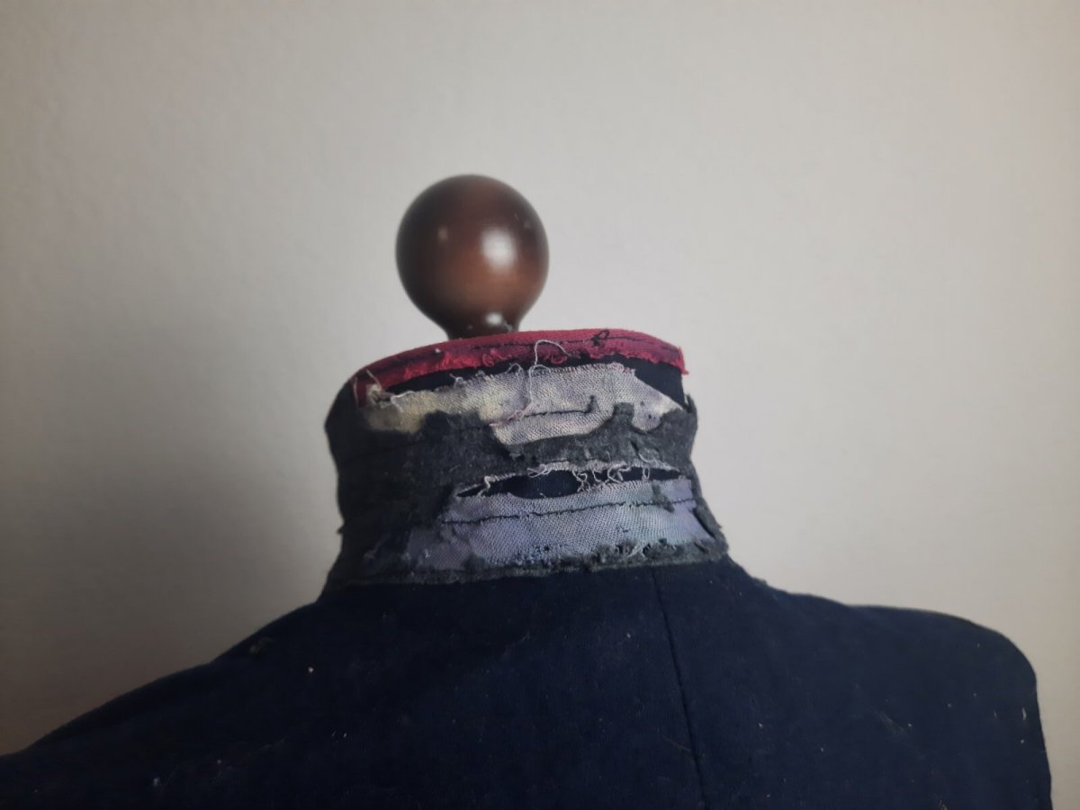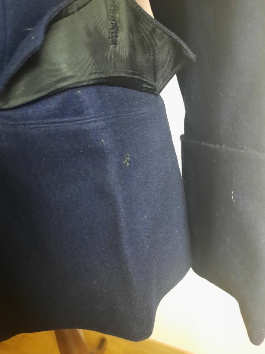 Здравствуйте коллеги, прошу помочь с определением и оценкой данного предмета. Достался как есть. По виду как китель пожарника, с утрат - спороты канты на обшлагах, моль с внутренней стороны воротника. Присутствуют клейма театра. Размер примерно 52, на рост 175см. Прошу высказаться на счет оригинальности и стоимости в таком состоянии.