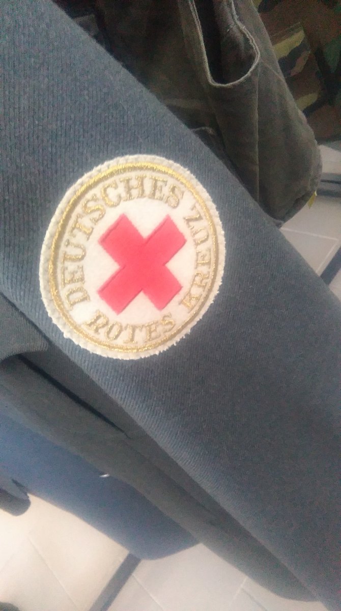 Так Красный крест и есть. Они отдельная организация со своей структурой и иерархией. С петлиц кто-то отковырял эмалированные крестики Круглый шеврон скорее всего указывает врачебную специализацию либо просто принадлежность непосредственно к мед. персоналу. Пуговицы вроде подходят на реконструкцию - в зависимости от диаметра.
