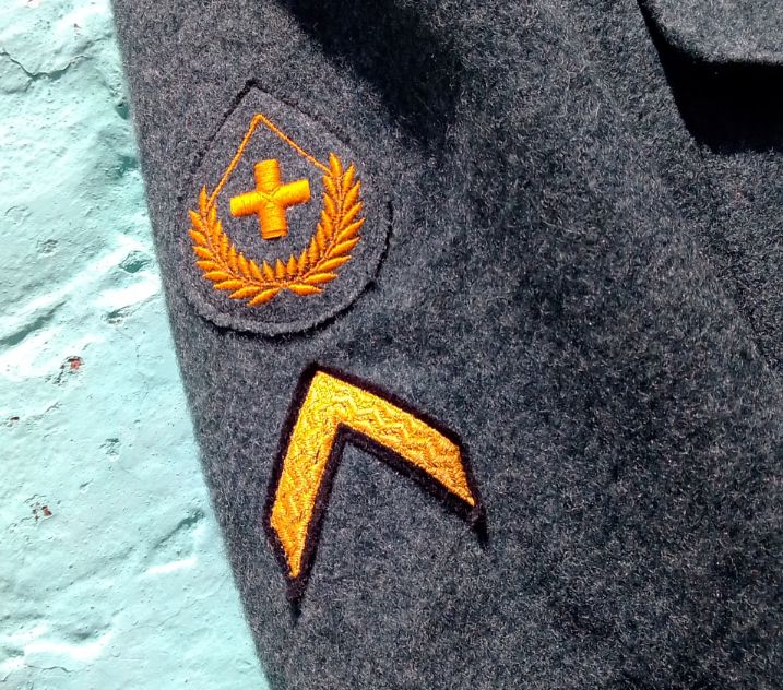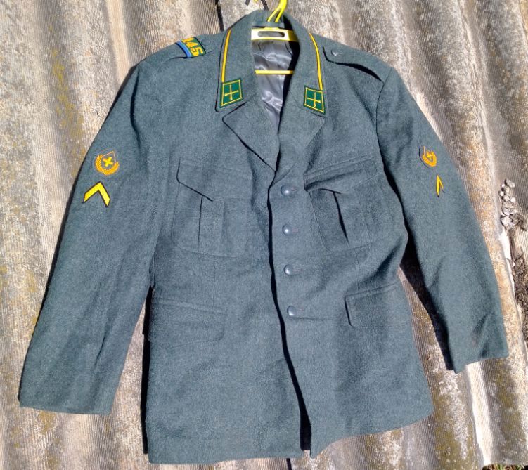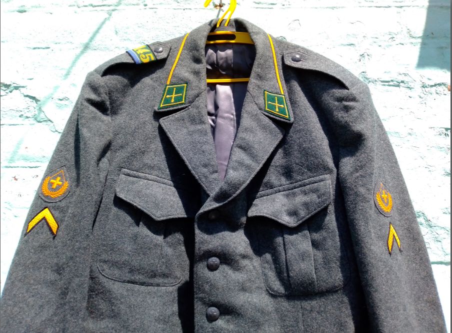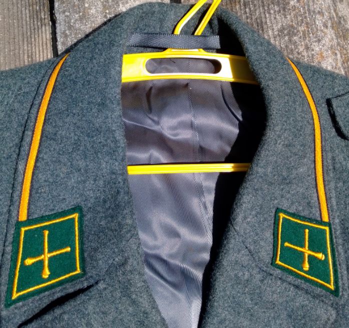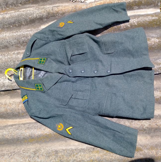 Здравствуйте. Представляю на обсуждение вот такой "необычный" китель. Что можно сказать по нашивкам-шевронам и воротнику? Спасибо.