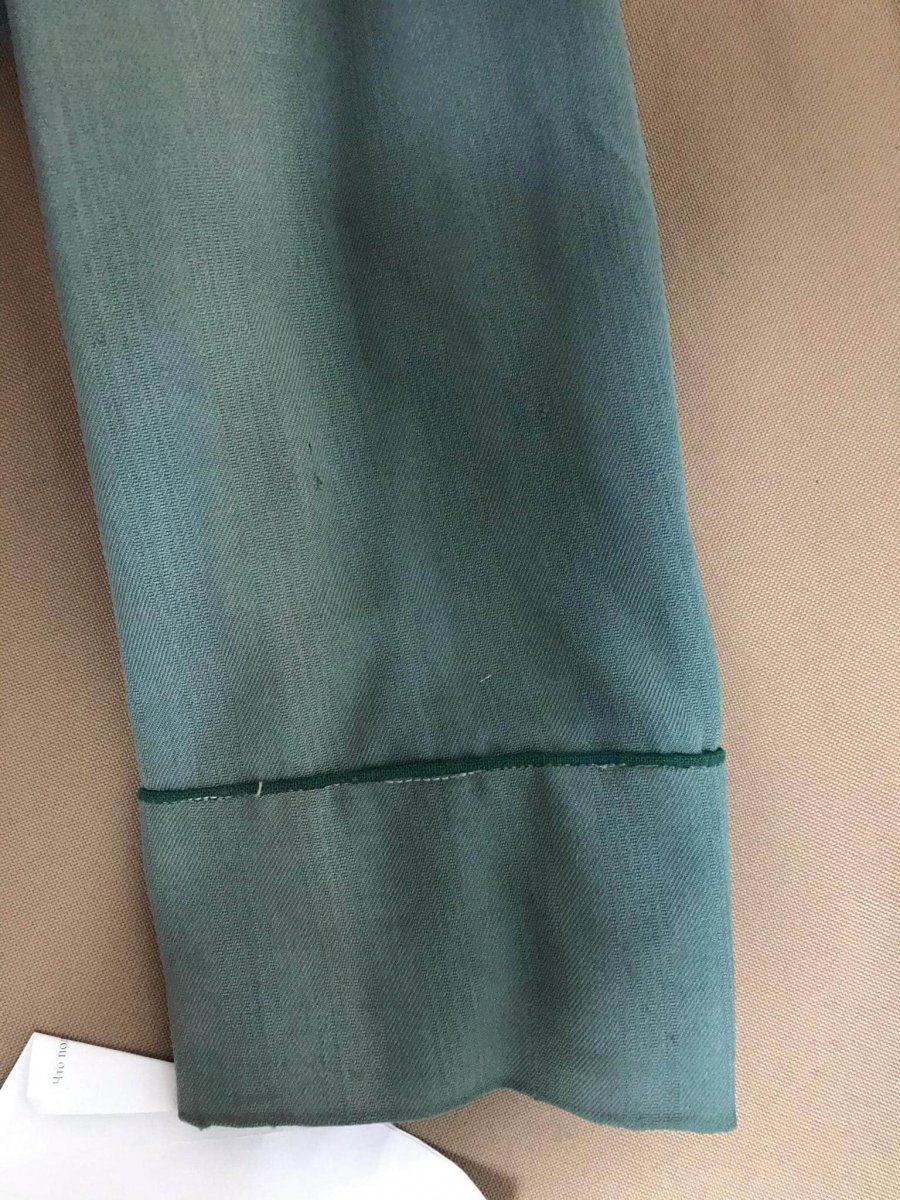 Китель точно не полиция Германии. На Полицейском кителе 8 пуговиц, и на нижних карманах нет складки ("банта"). Крой воротника тоже не немецкий, и форма нагрудгых карманов не немецкая. И сам крой кителя не немецкий. Вшиты подплечники, короткие пришивные обшлага с зеленым в цвет воротника кантом. А петлицы большие прямоугольные и широкие. И не Австровенгрия. У них "галочка" клапанов кармана другая, более "экстремальная". Надо посмотреть изнутри как пошит , и спину бы глянуть, плечи стояли погоны или нет, поискать бирочки, могут подсказать.