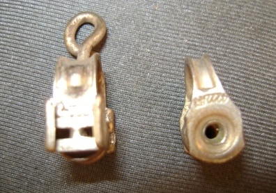 я вот тут подумал-а,что если эти штуки-такие своеобразные зацепы для вешалок ? имеется в виду,что -привычнее как? в платяном шкафу поперёк обычно крепится палка-от стенки до стенки-на неё цепляются вешалки с одеждой..так ? почему бы не предположить,что вместо привычной нам перекладины в немецком шкафу этой фройляйн находилась хитроумная система с направляющей в виде балочки Т-образного сечения ,по которой катались ТАКИЕ детальки..снаружи всё это могло быть закрыто глухим П-образным кожухом так,что видны оставались только крючки этих деталек,в которые,собственно,и цеплялись вешалки с одеждой-вот и объяснение наличия знака Патента на детальках !..наверное,модная штука была в своё время....это довольно удобно- не надо прикладывать усилий,чтобы оттащить,при необходимости, массу пиджаков,курток,шуб-ПРОСТО ОТКАТИЛ ВСЁ ЭТО В СТОРОНУ одним махом и нет проблем..удобно и при простом пересмотре одежды,висящей на вешалках-откатывай да откатывай себе потихоньку..кстати,есть объяснение ,как эти штучки оказались в кармане фройляйн..у деталек очень узкое кольцо..и вынуть из него крюк вешалки можно ,если никуда не спешишь..собираясь второпях,фройляйн,видимо,не смогла аккуратно вытащить вешалку с кителем и просто рванула её с силой..карниз разлетелся-что-то из одежды упало на пол,и одеваясь,фройляйн,собирая одежду с пола, подняла и эти детальки,машинально сунув их в карман,да и забыла про них..думаю,так всё было..