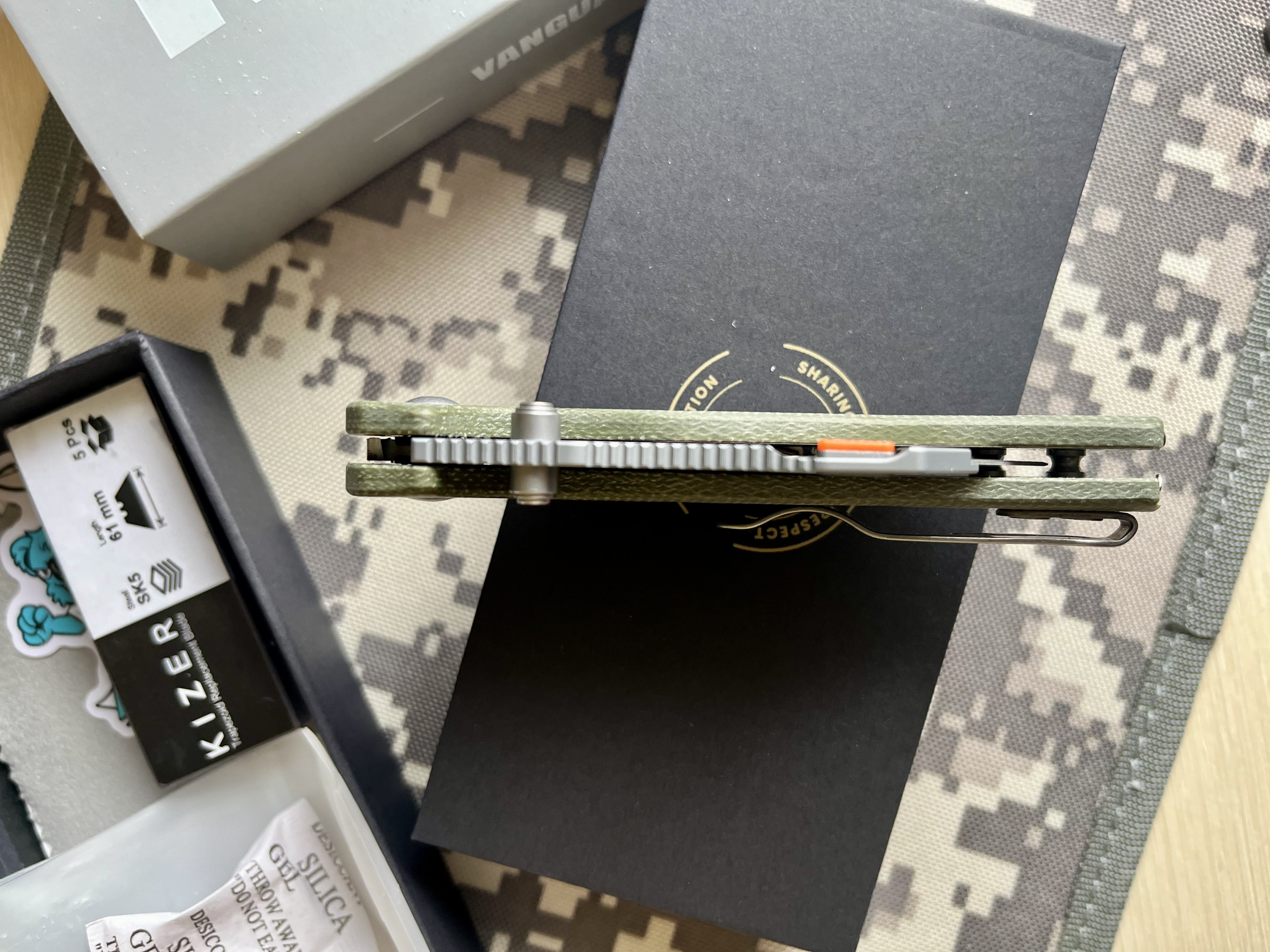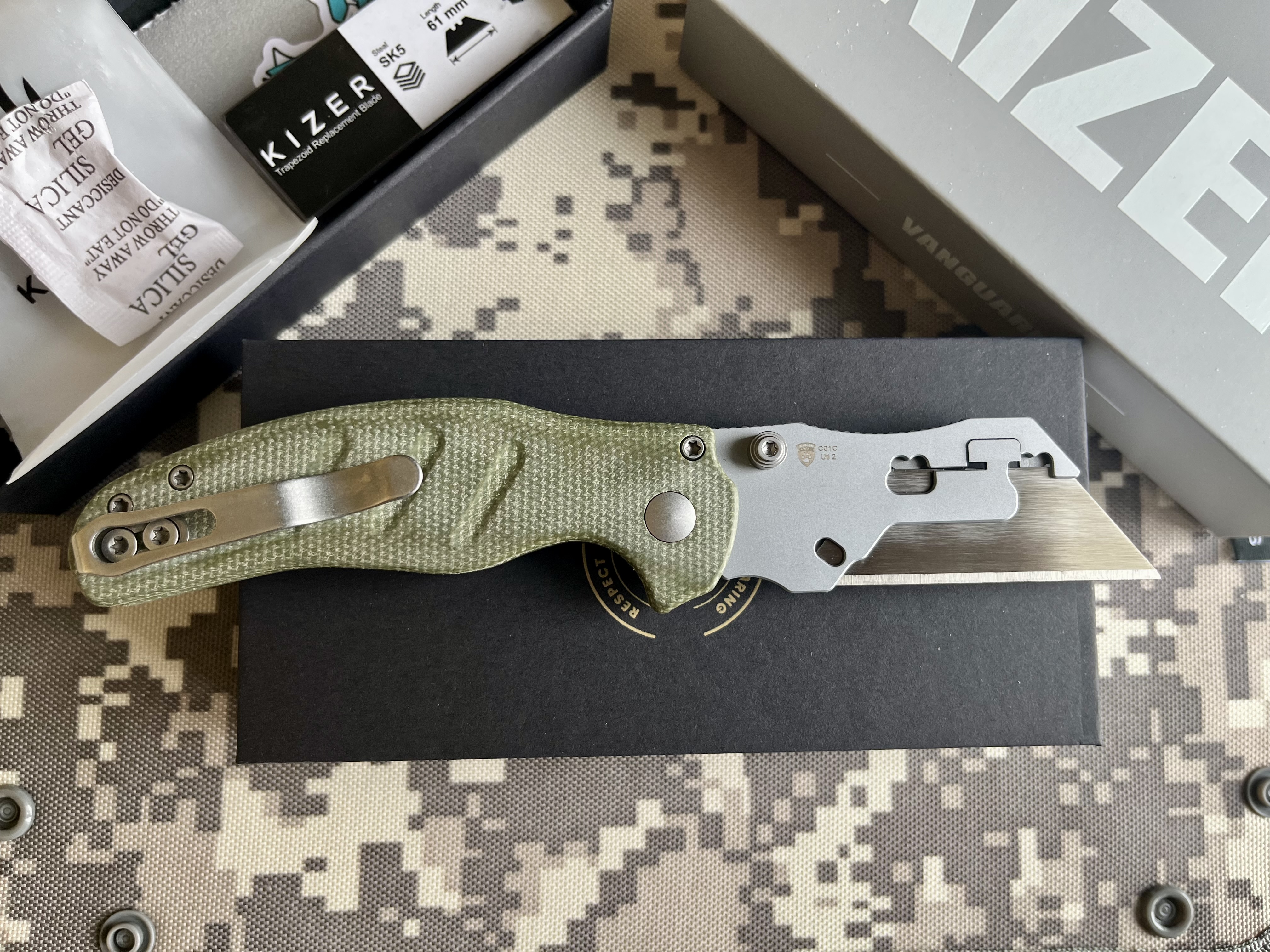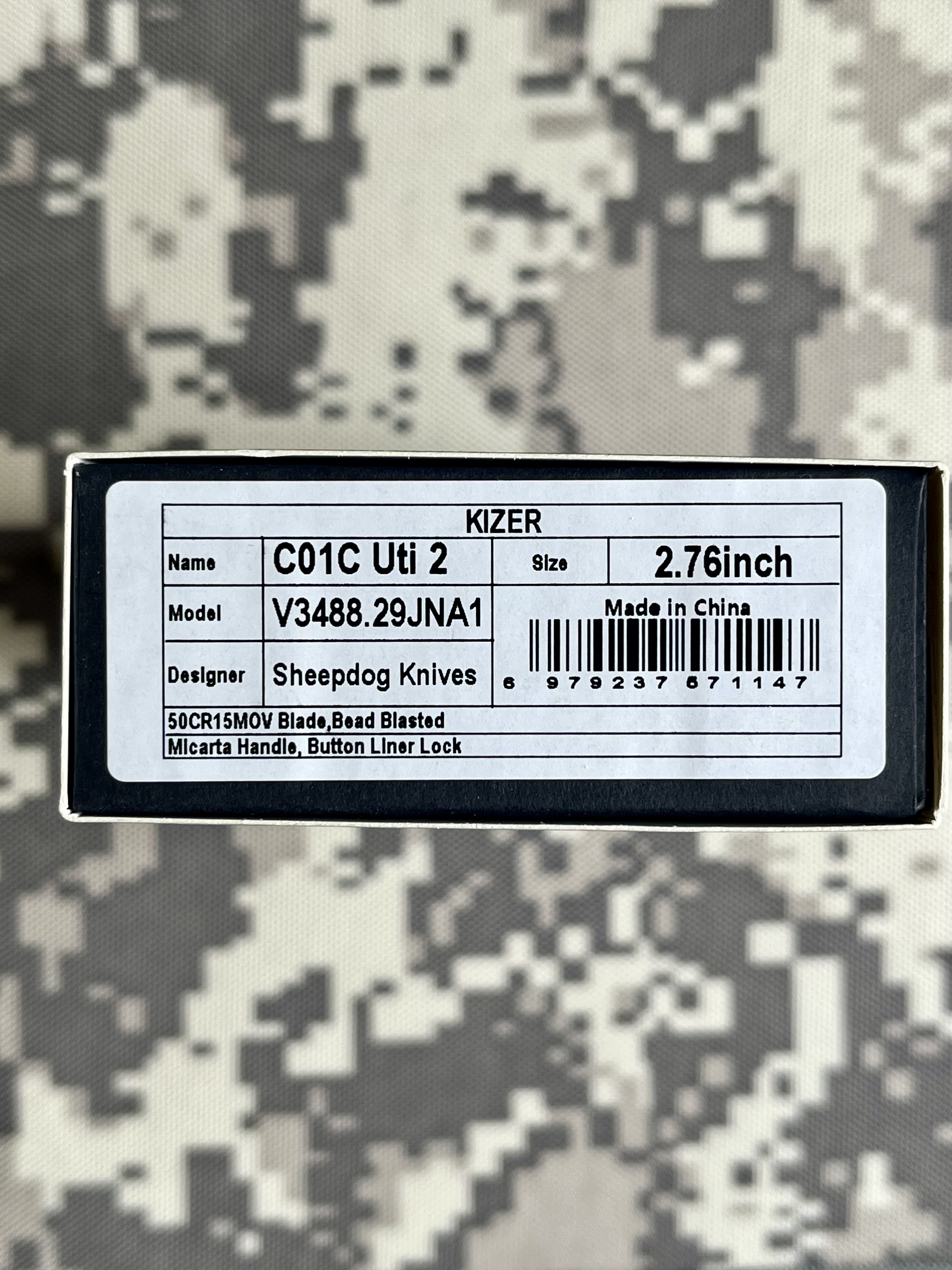 Kizer Cutlery C01C Uti 2 (Sheepdog), Green Micarta & Bead Blast • Фиксация клинка: Button Liner Lock • Рукоять: Micarta • Дизайнер: Chris Conaway • Вес: 81 г • Длина общая: 174 мм • Длина клинка: 71 мм • Длина рукояти: 104 мм • Толщина клинка: 2,8 мм Новый. Цена – 1800 грн