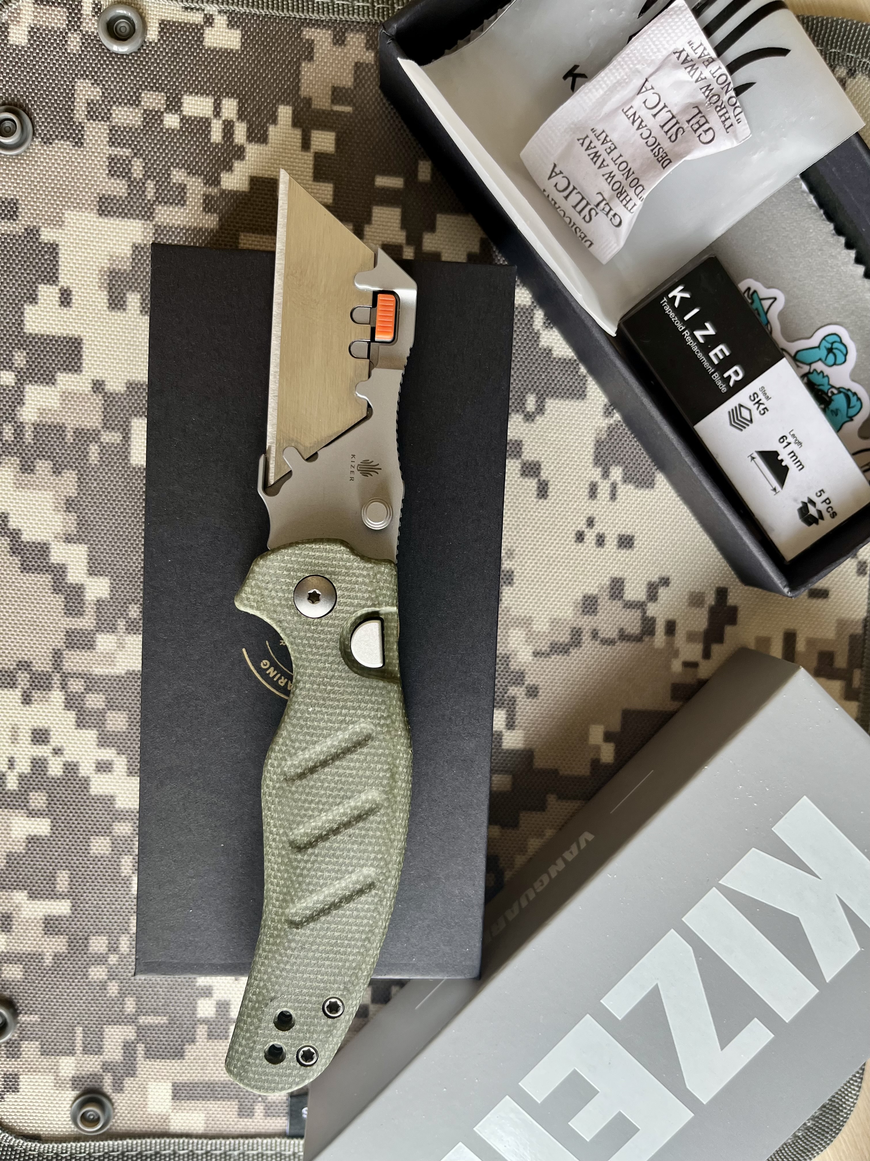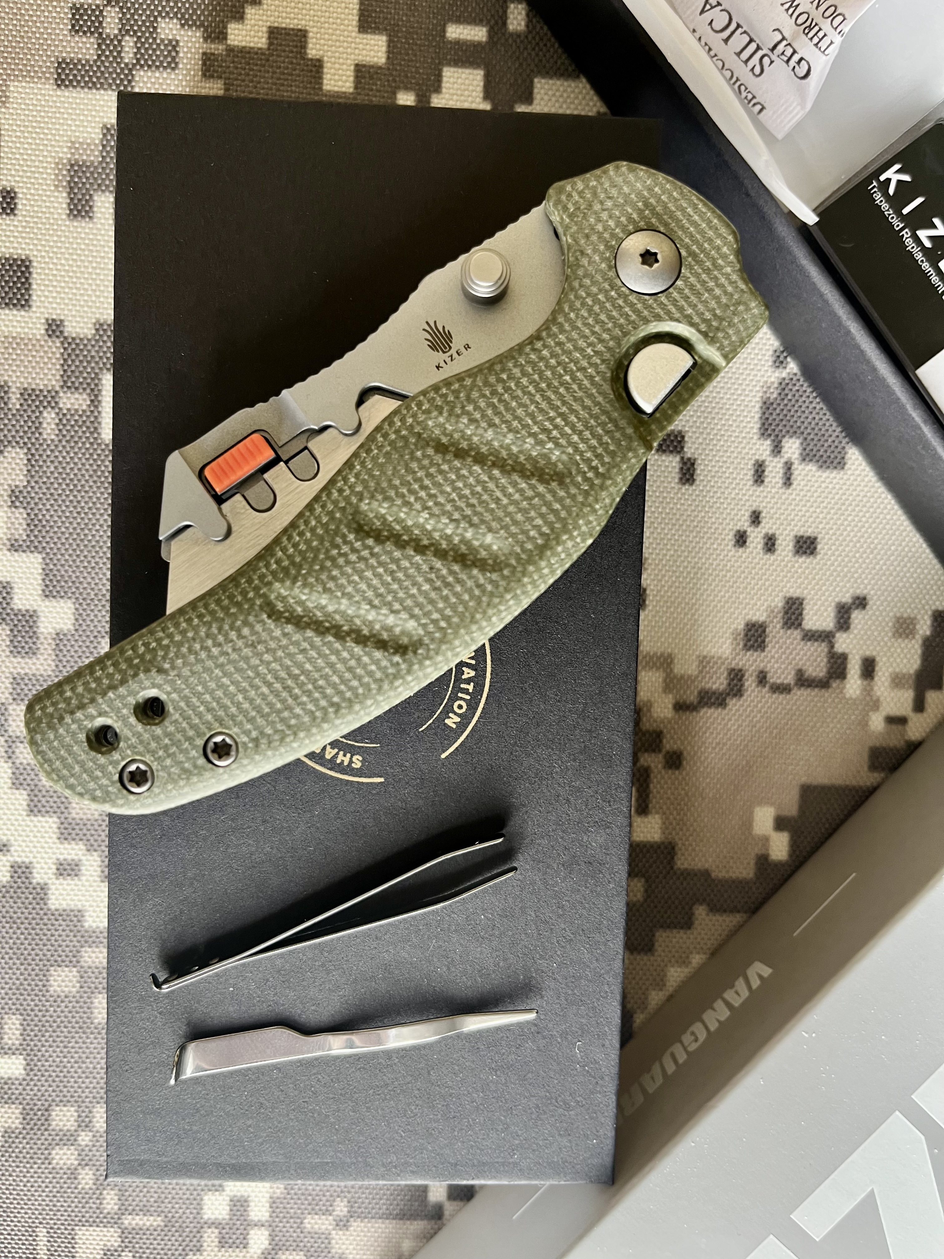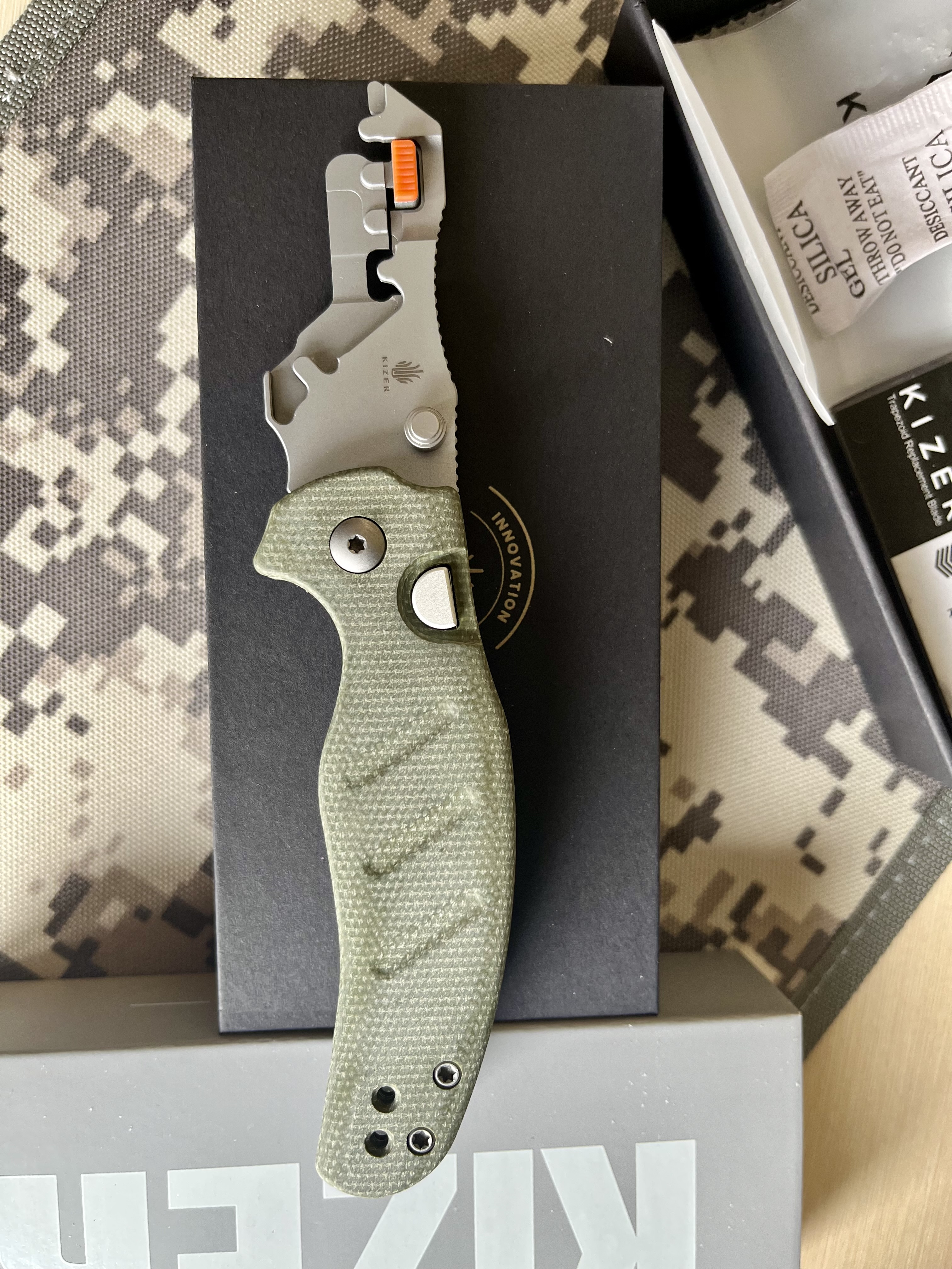 Kizer Cutlery C01C Uti 2 (Sheepdog), Green Micarta & Bead Blast • Фиксация клинка: Button Liner Lock • Рукоять: Micarta • Дизайнер: Chris Conaway • Вес: 81 г • Длина общая: 174 мм • Длина клинка: 71 мм • Длина рукояти: 104 мм • Толщина клинка: 2,8 мм Новый. Цена – 1800 грн