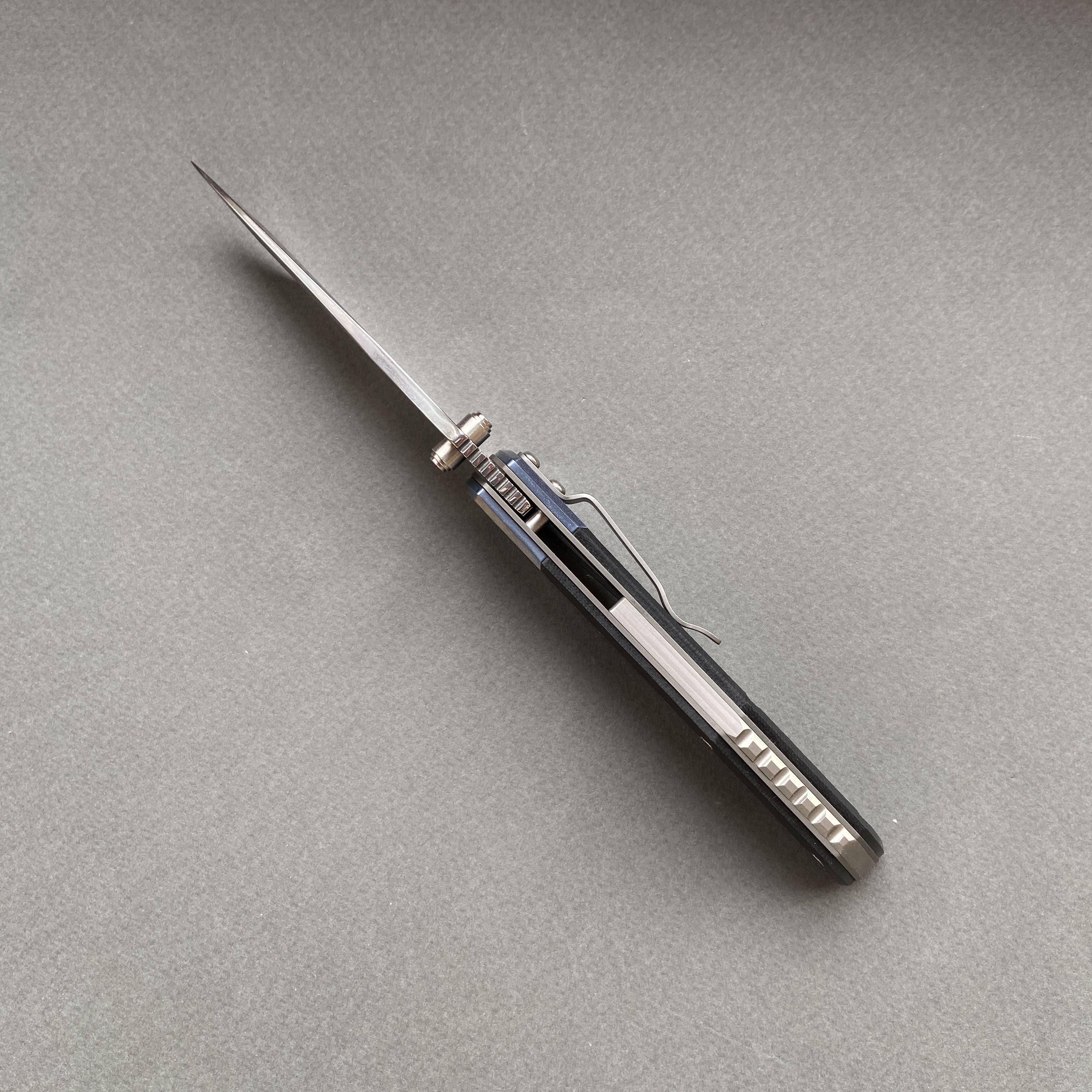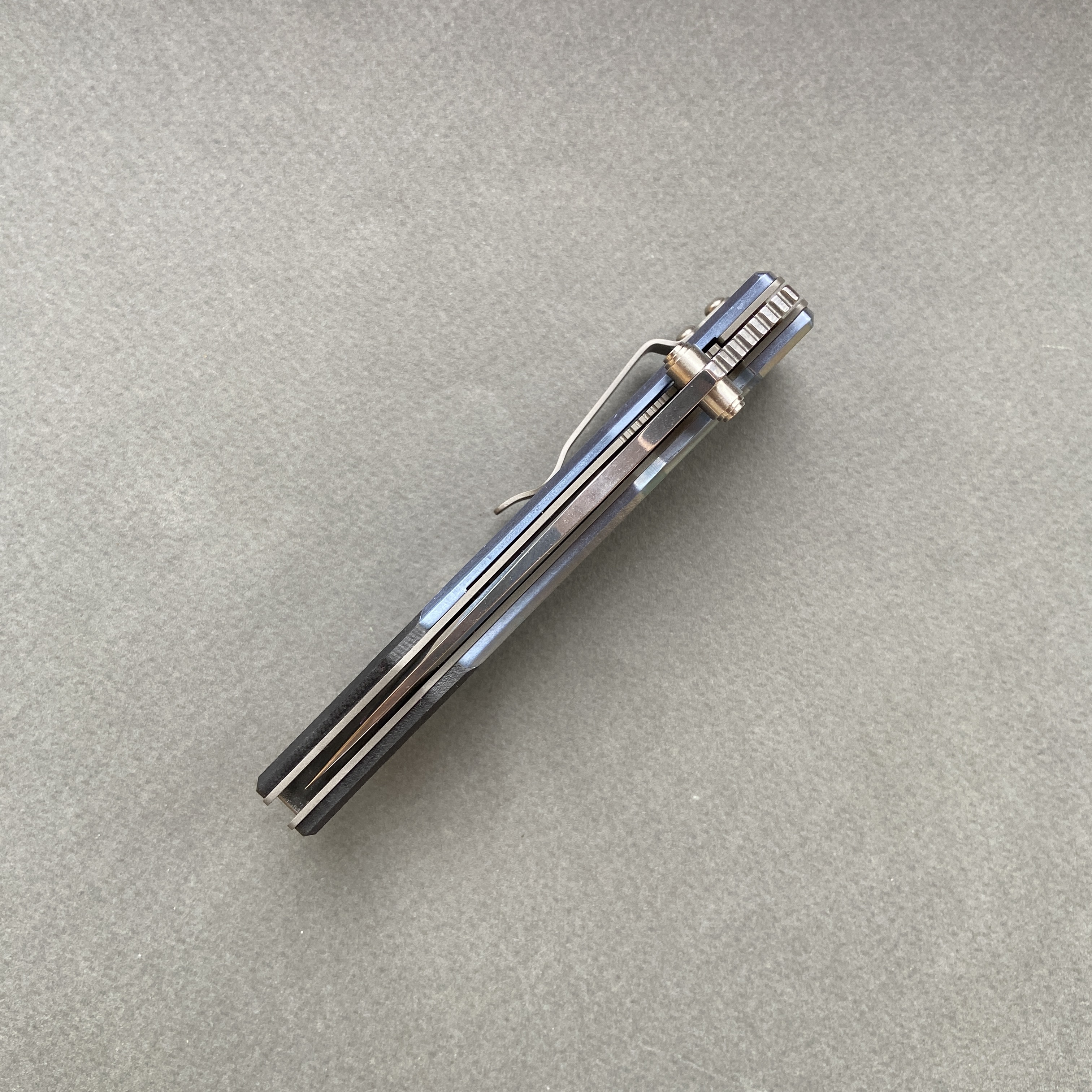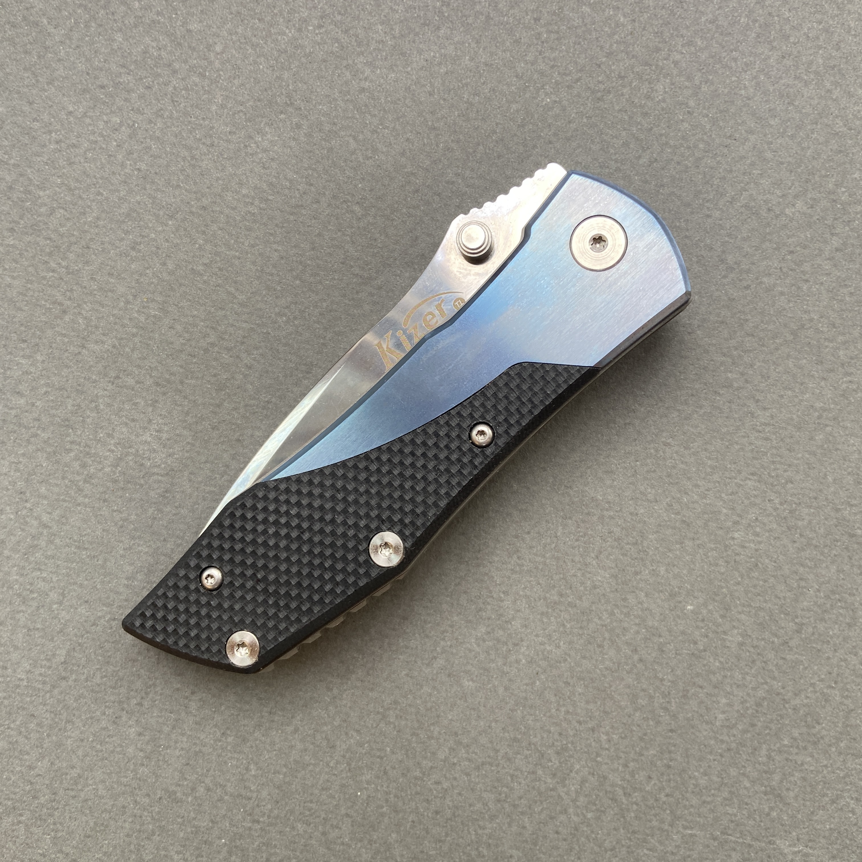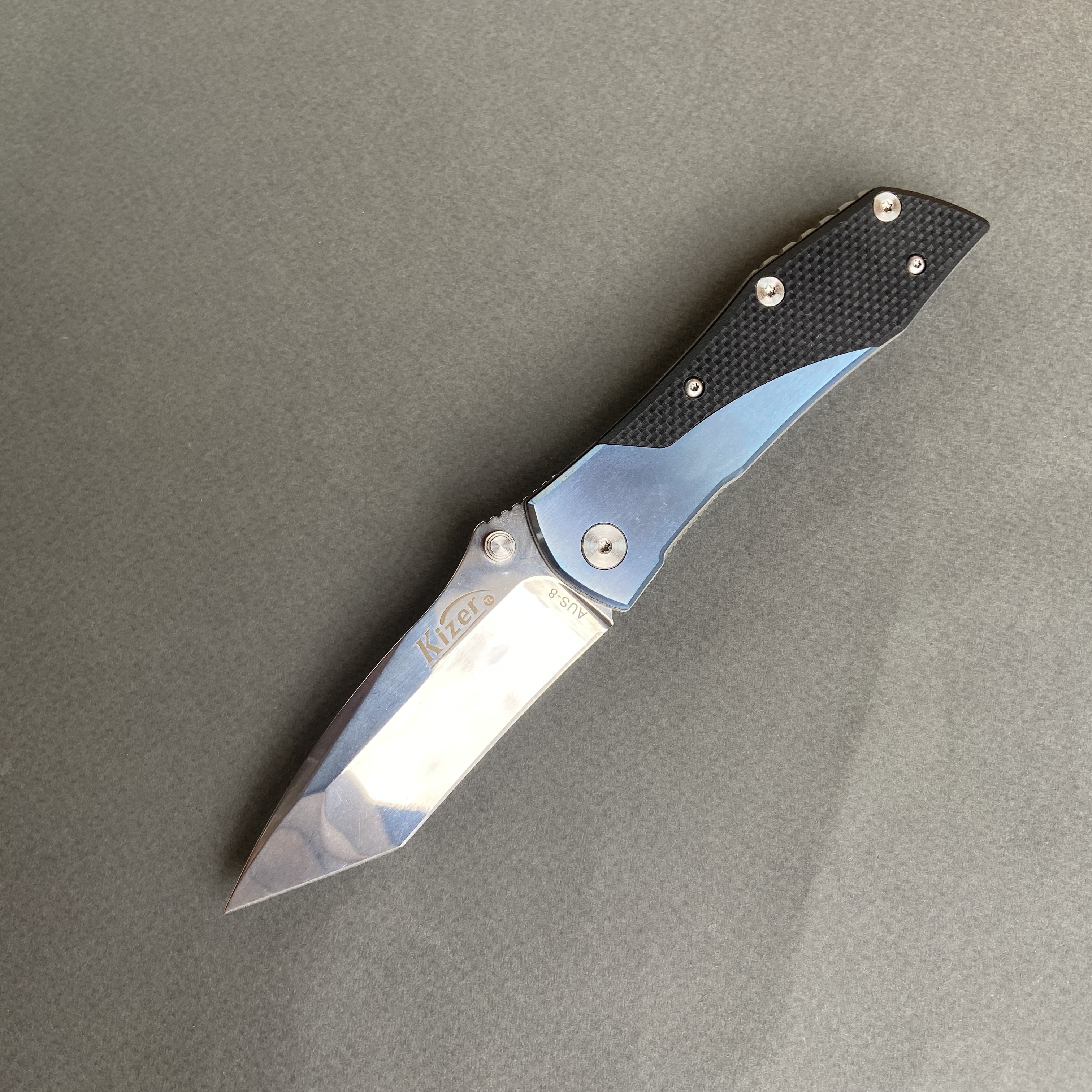 Kizer Shadow , модель з часів ще невеликої напівкастомної мануфактури, яка розрослась в одну з найвідоміших компаній в світі, і зрозуміло чому - стильний диайн, і комбінація дзеркала і балкитного анодування дуже личить цій моделі. Загальна довжина - 203 мм Сталь - AUS-8 Mirror Polished Довжина леза - 89 мм Товщина леза - 3мм Замок - LinerLock Матеріал рукояті: Анодований Титан і G10 Ціна - гривень Новий, діставався тільки для фотосессії, додаткові фото-відео відправлю бажаючим, механіка відмінна, люфти відсутні, папірці, наліпки, коробка, усе що в комплекті повинно бути. Також є: CRKT Slacker , Kunwu X-Padre і Kansept Shard Limited Edition, Kizer Shadow, Kunwu Pulsar DLC & Carbon, Spyderco Military 2 Camo DLC