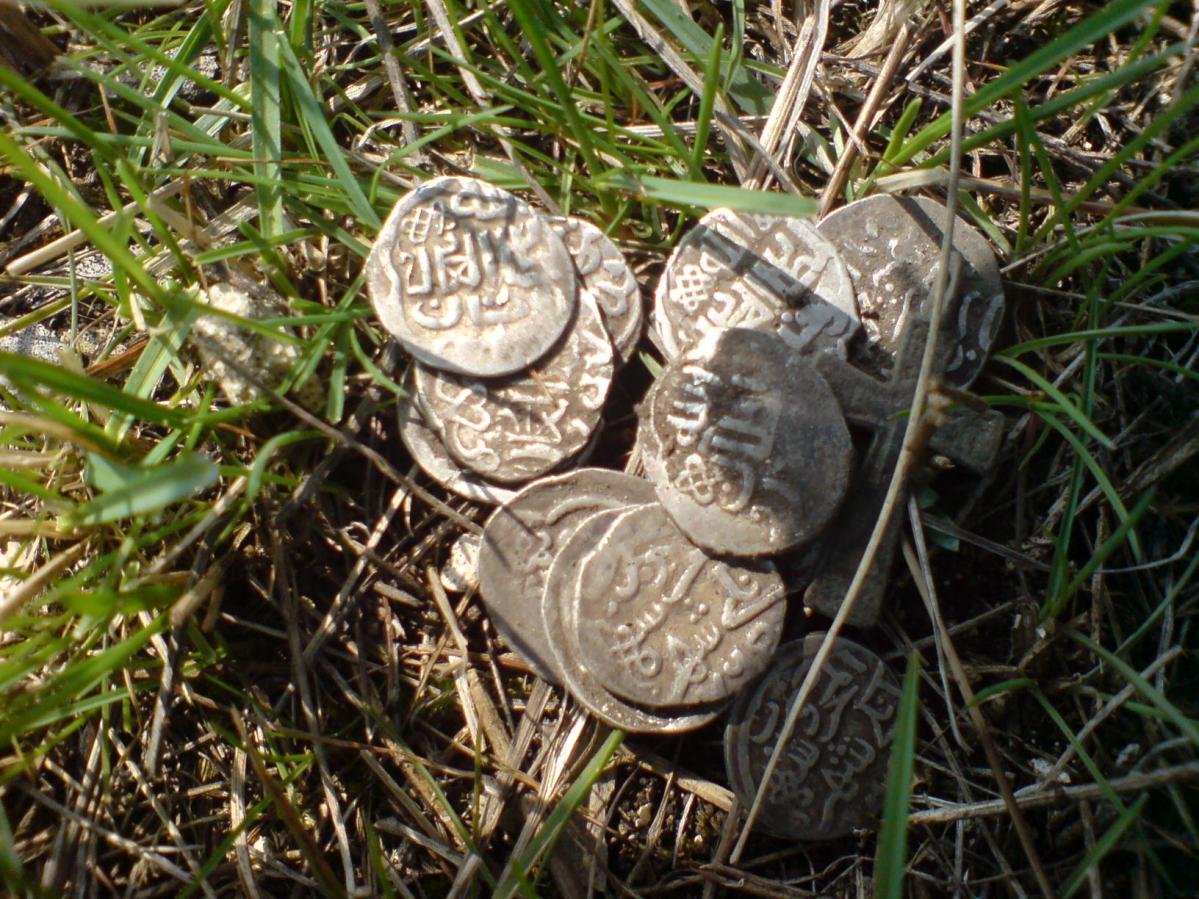 Собственно вот, нашёлся клад на пригорке возле днепровской затоки. 29 штук россипью на глубине 5-10 см. Подскжите по стране(Золотая Орда????) дате(12 век???) и паралельно стоимость