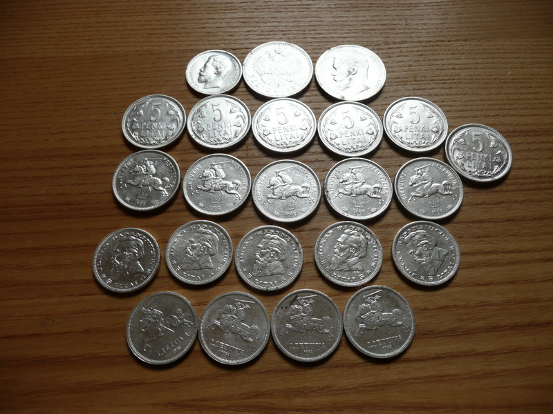 Монеты,два рубля,50 коп.,остальные все по пять лит.Помою выложу.;)