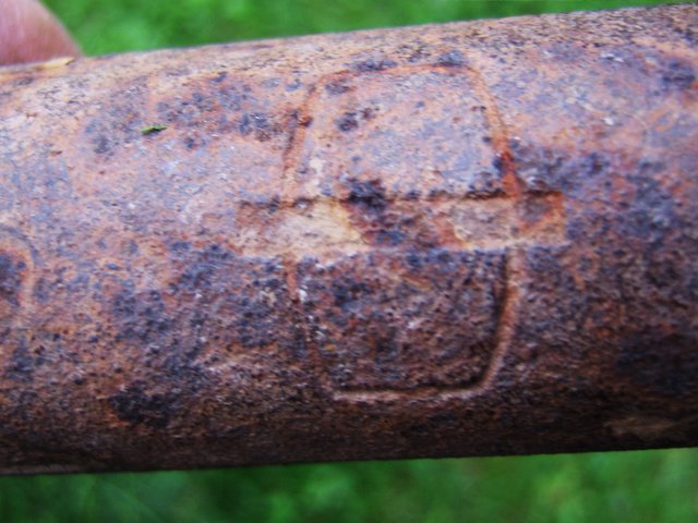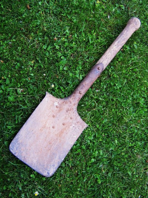 Вот такую лопатку обнаружил при разборе сарая на своем же участке. Древко рыхловато уже поверху, много лет там провалялось. Выжжены буквы какие-то ,но уже не прочесть... Клеймо непонятное, может кто встречал ? Ну и в гриль-беседке у соседа 80 лет - поднял голову и обнаружил табличку прикрученную... Скока лет мимо ходил-не обращал внимания... А симпатичная! Думаю-передняя стенка от походного солдатского ящика с ПМВ. Окопная работа.