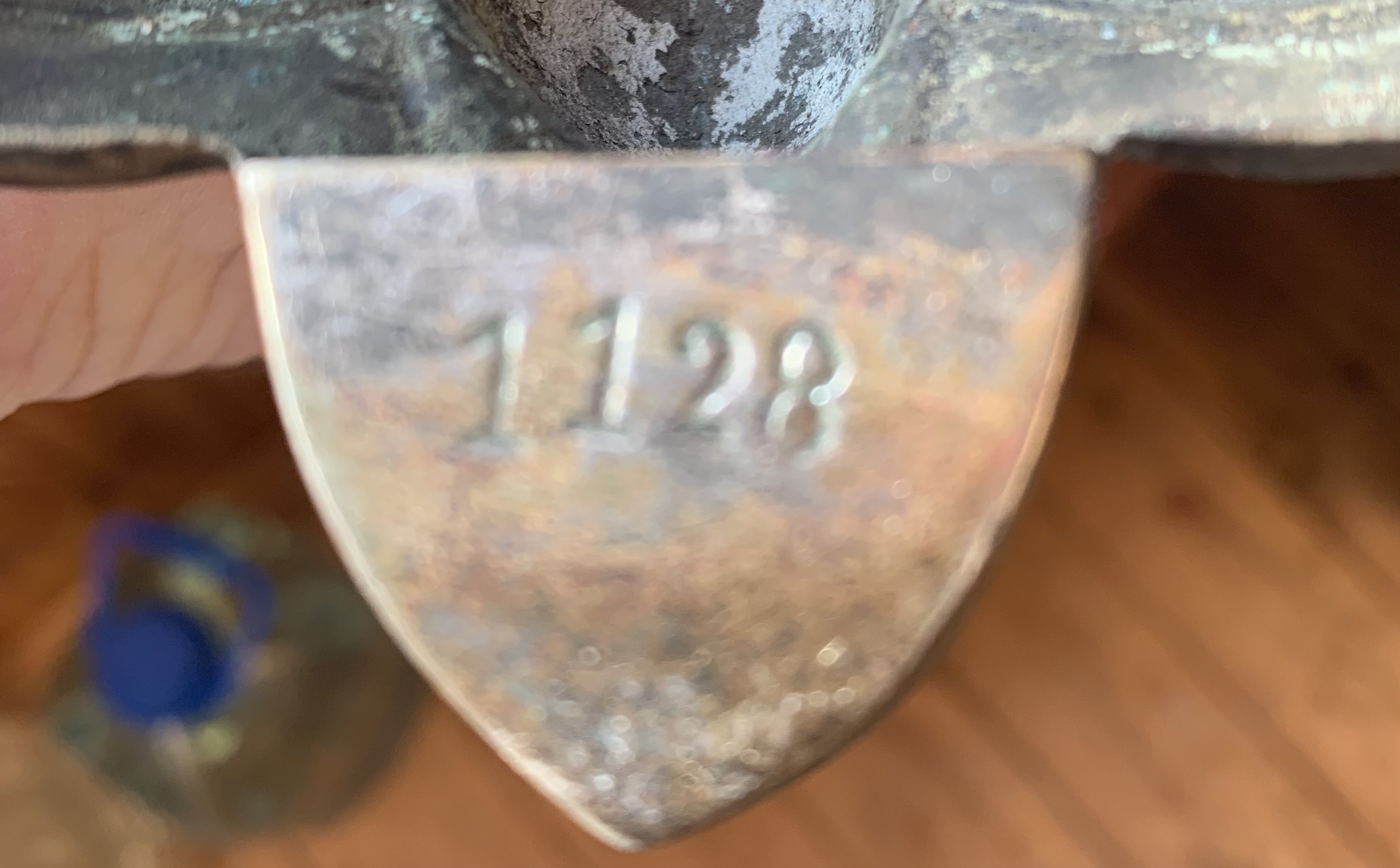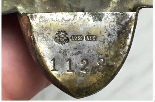 вітаю. подібний підсвічник з тим же каталожним (складським, виробничим) номером 1128 , датою виготовлення (1858 рік) та клеймом майстра