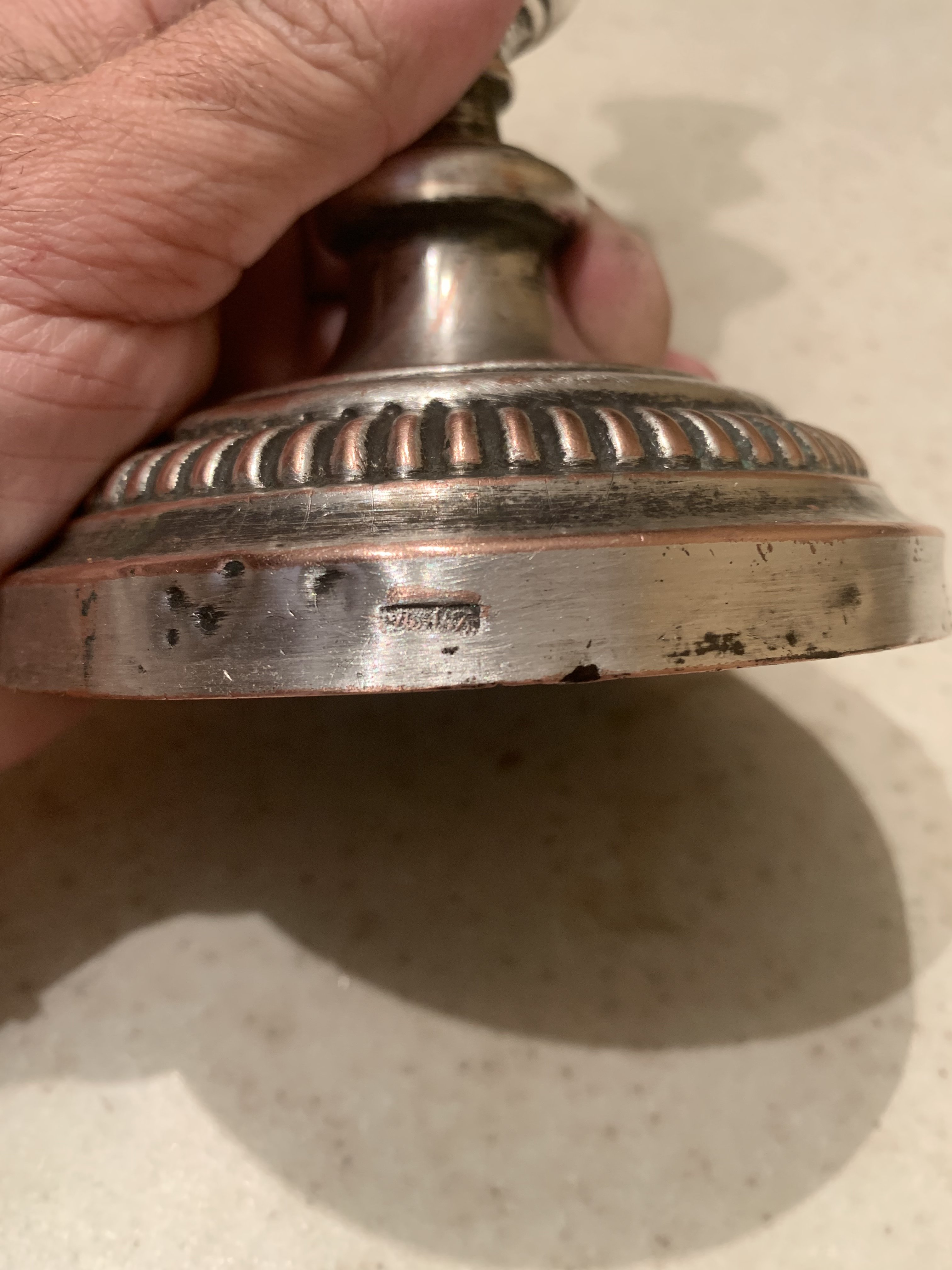 Добрый день.Прошу подсказать по клейму на подсвечнике.Фото-выдавил,что смог.Вроде,посеребрение.Спасибо ответившим.