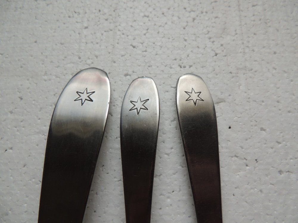 Собрал столовый набор нержавейка HMZ. Предметы пришли из Германии, Украины и РФ. На некоторых стоит клеймо звезда. Приборы клеймились наверное в какой то части малой партией,встречается не часто хотя на цену не влияет. Это их так разбросало по всей Европе или всё таки эта звезда частое явление?