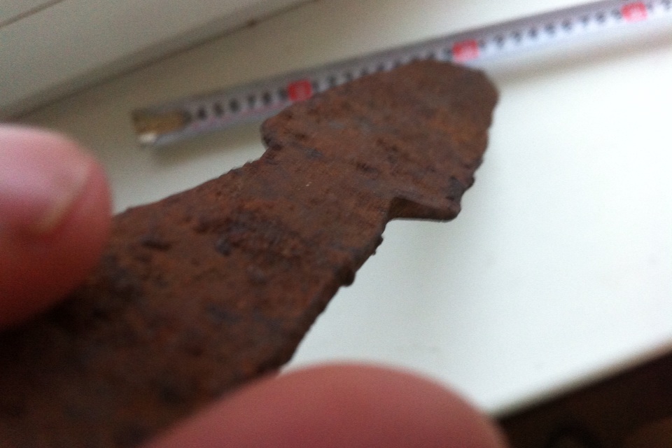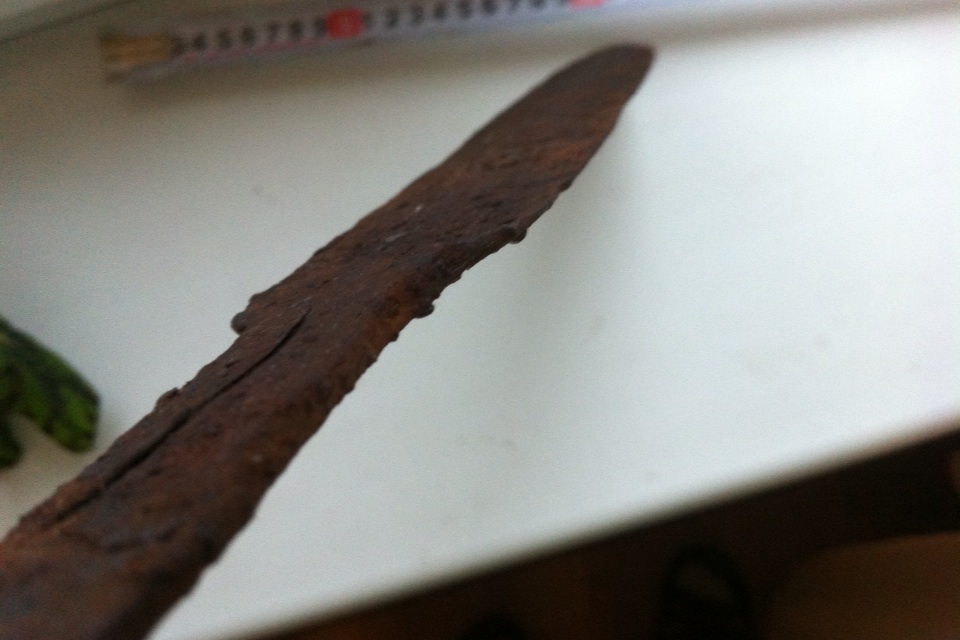 Хотелось бы все таки выяснить что это за клинок, что за оружие? По ширине и по толщине(max 4 mm) до меча не дотягивает, соглашусь с Вами. Тогда что это? Понятно что этот обломок был у человека, пока тот не решил сделать из него себе "ножь" Подожду может кто-то еще что-то скажет. С ув.