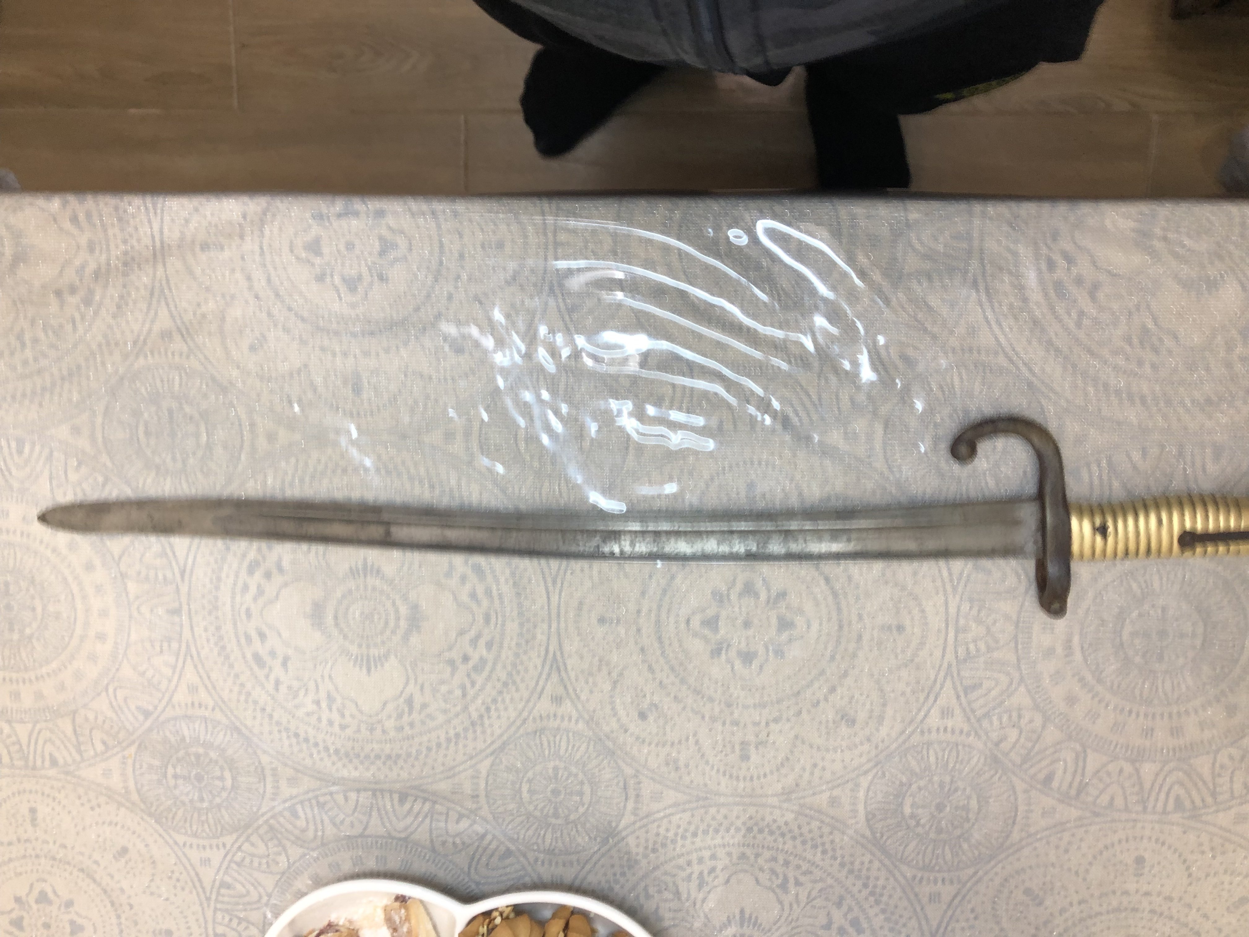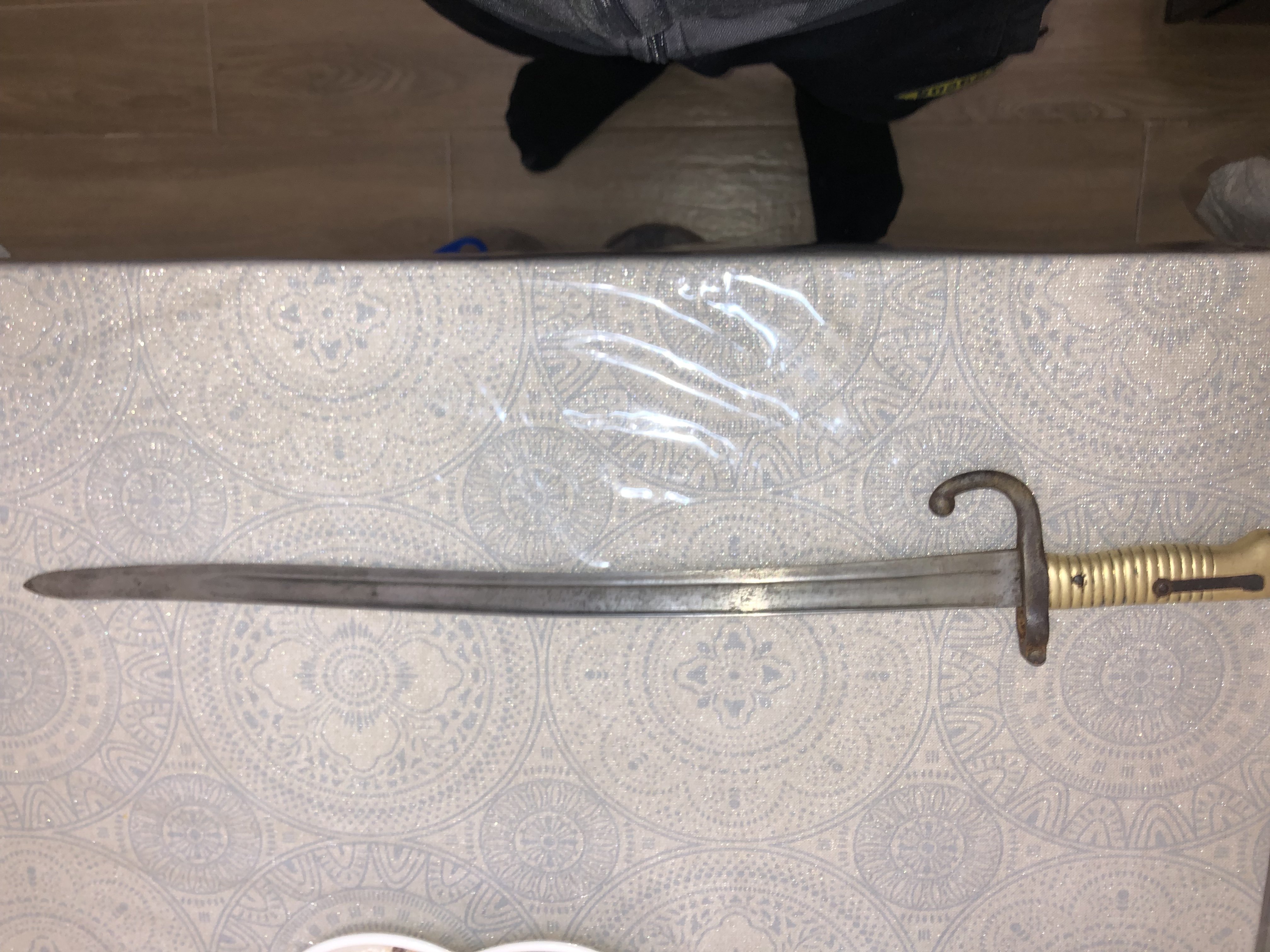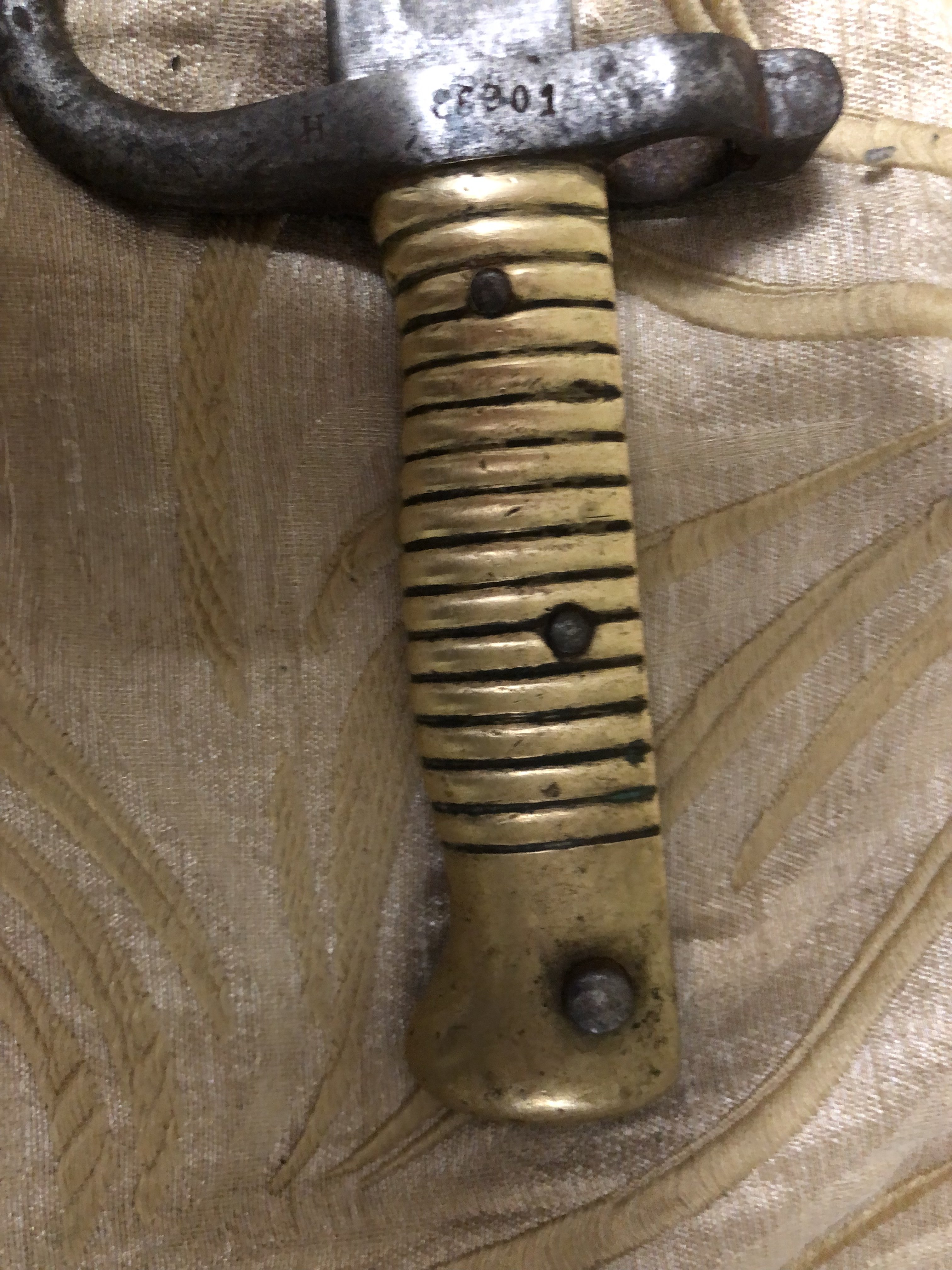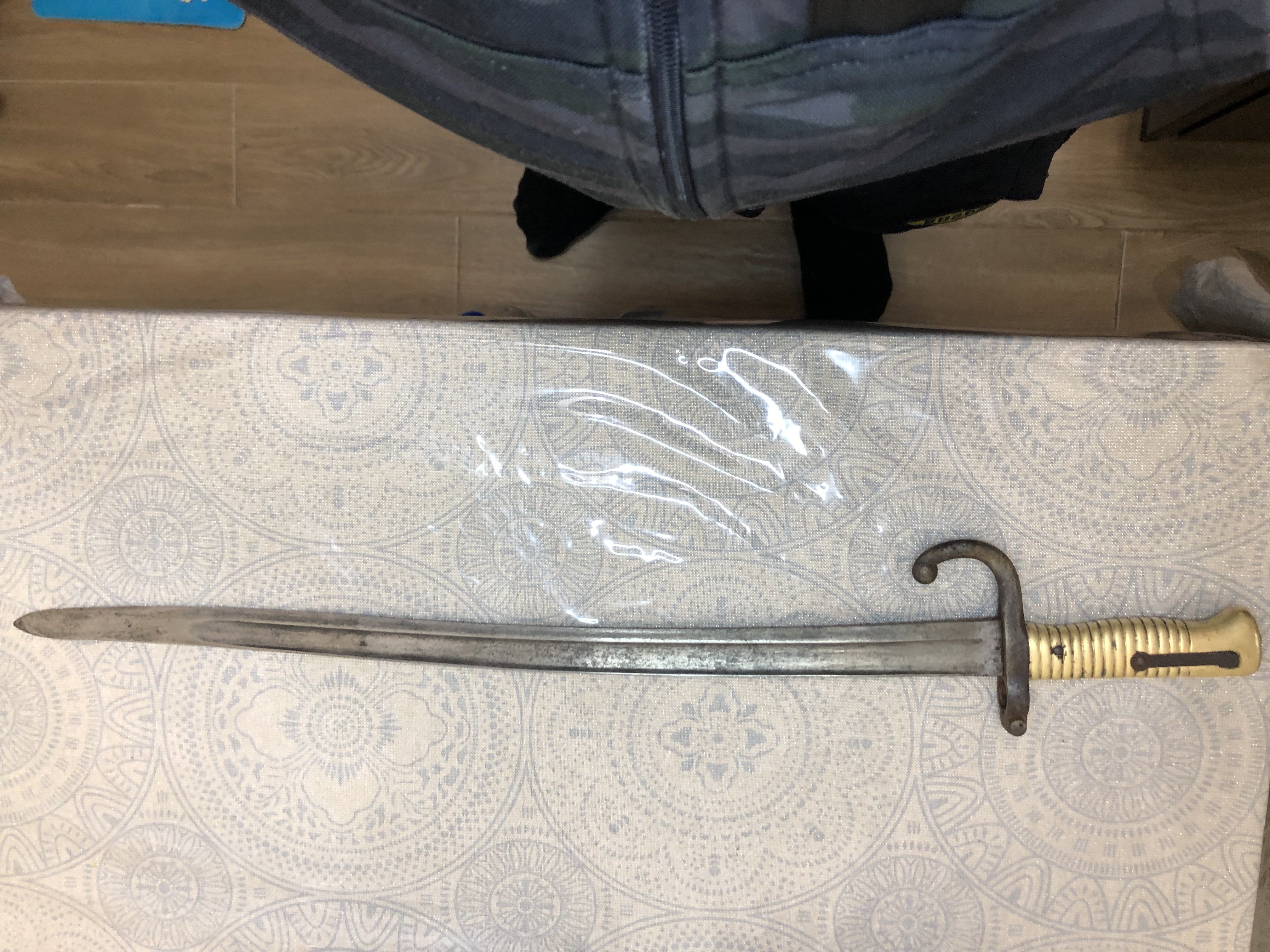 Правильно называть-штык обр. 1866г. к винтовке системы Шасспо. Без ножен,но и без особых изьянов, оценил бы его в 5000-5500гр.