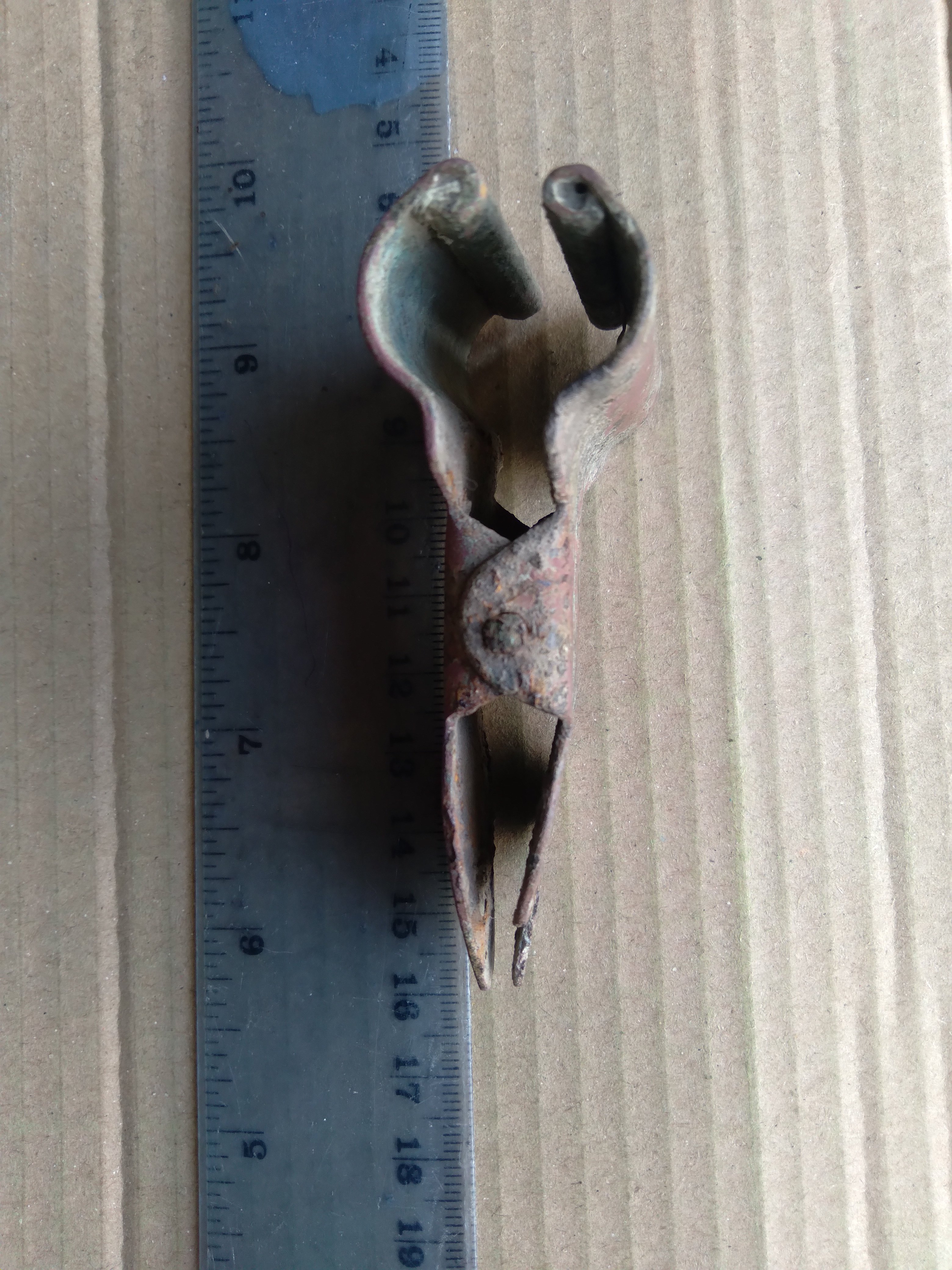 Вітаю! Перше про що подумав, зважаючи на форму губок, - затискач для штанів велосипедиста, але ширина губок здалється завеликою. Може бути ще один варіант - "...затискач у вигляді щипців, що використовується у швейній промисловості для формування настилів тканини. Перед розкрою одночасно пакету шарів тканини, його стискають, фіксуючи її затискачем." Фото сучасного: (Розміри: довжина - 165 мм, ширина губок - 75 мм, ширина розкриття - 55 мм).