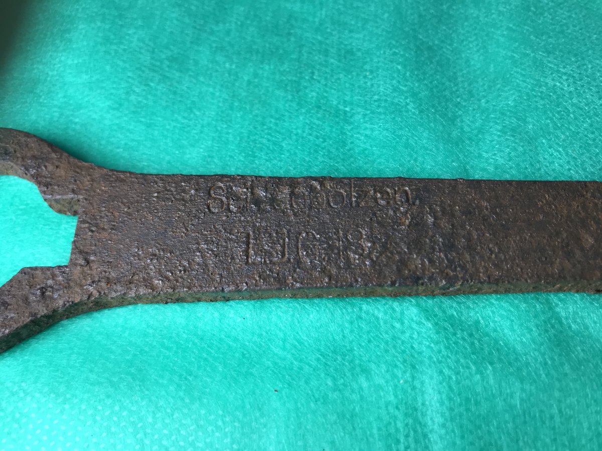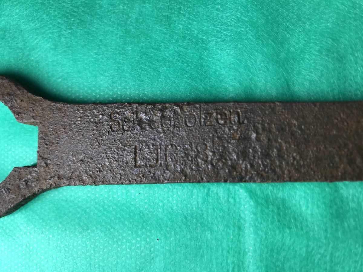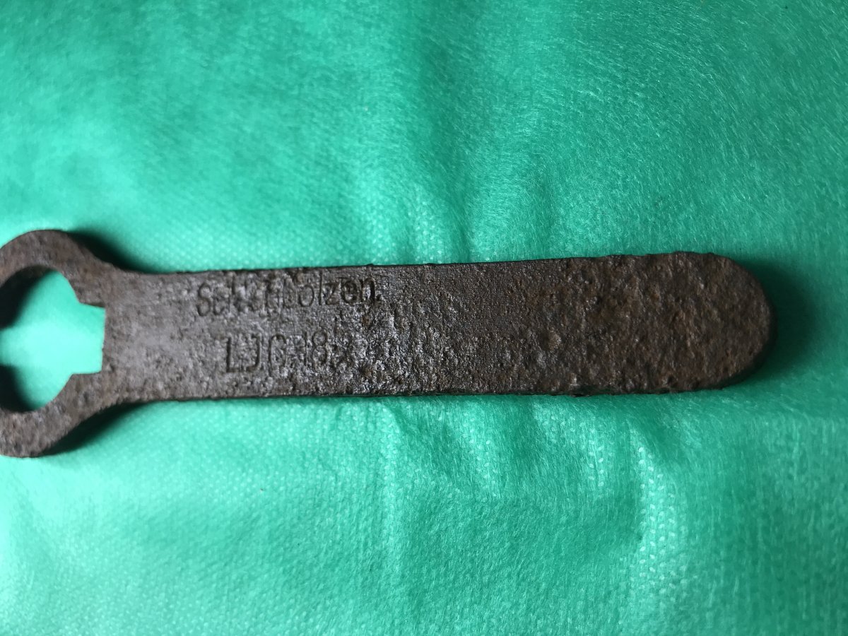Вітаю панове. Сьогодні знайшов даний предмет, я так розумію, що це ключ? Цікаво лиш від чого. На ньому наявні надписи наче на німецькій мові. Ключ знайдено на позиціях по Вермахту.