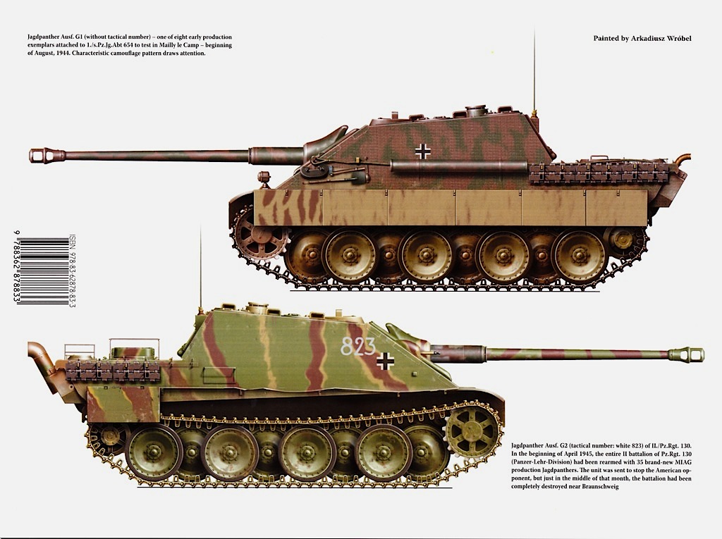 106 страниц, Мягкая обложка, 274 x 250 мм (размер Α4), 17 ч/б фотографий возраста, 70 цветных фотографий прогулки Jagdpanther Ausf G1, 39 цветных 3D-иллюстраций (современные компьютерные изображения), раскрывающих каждую точку Jagdpanther, 38 страниц подробных многоракурсных чертежей в масштабе 1/350, охватывающих все версии Jagdpanther, 8 цветовых профилей, 8 таблиц данных.Цена 700гр