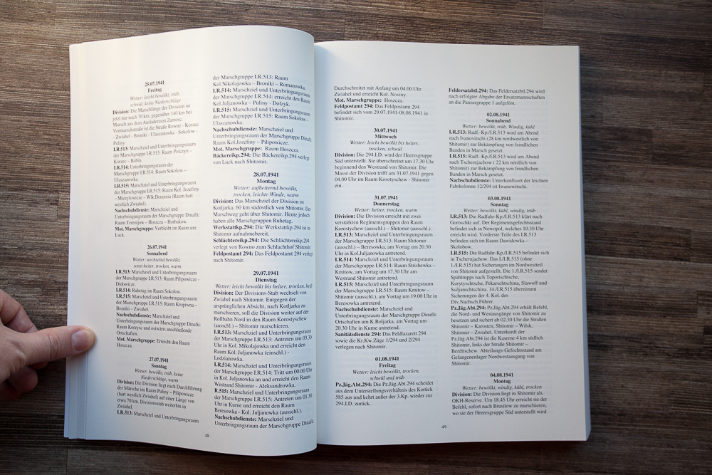 Geschichte der 294. Infanterie Division 1940-44 (история 294 пехотной дивизии) Автор: Stefan Hansel Год издания: 2014 Издательства: Переплет: мягкий Страниц: 365 Язык: немецкий цена: 1000 грн описывает ежедневные события 294-й пехотной дивизии в 1940-1944 годах. В приложении содержится дополнительная информация о отчетах статусе, силе, штатные расписания, полевые порядки, назначенные подразделению, военные подразделения, а также карты. -------------------------------------------------------------------------------------------------------------------- Die Zentauer Brigade 236 - Geschichte der Sturmgeschutz-Abteilung 236 (история 236й батарии/бригады штурмовой артиллерии) Автор: Sarrazin Kurt Год издания: переиздание 1966года. Издательства: Eigenverlag Переплет: твердый Страниц: 160 Язык: Немецкий цена: 1000 грн.